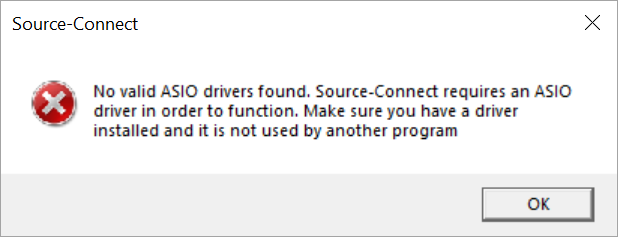 When opening a new Source-Connect session, users get the following error message: