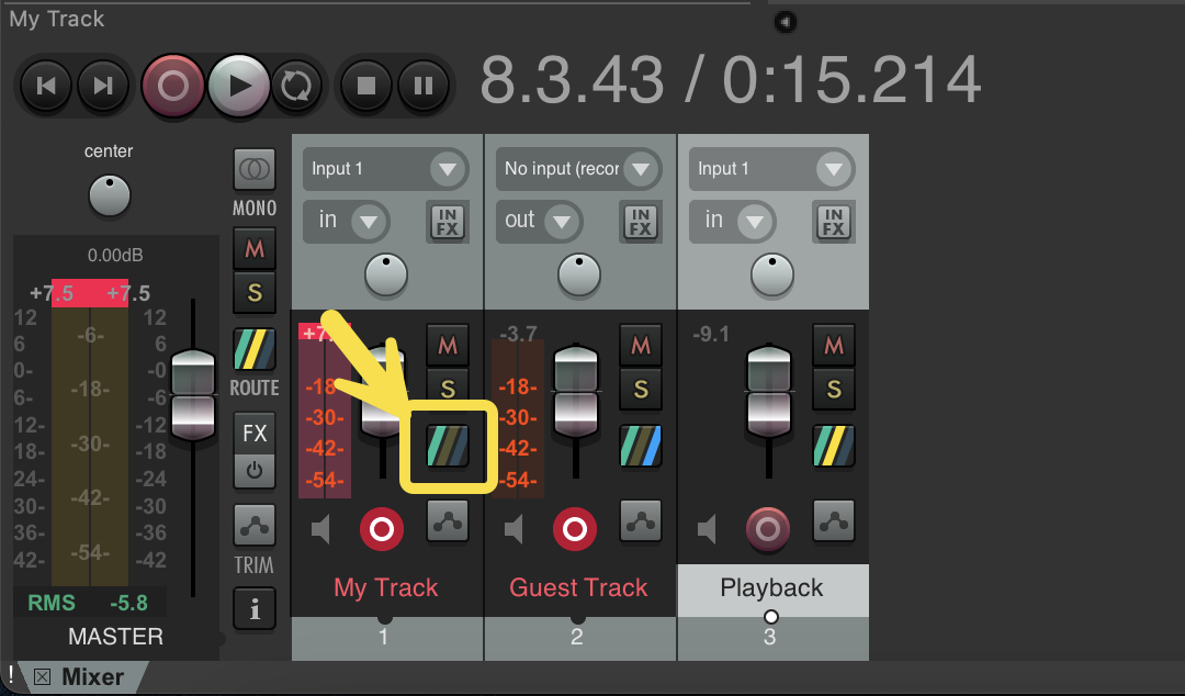 - Record arm the “My Track” track. Also, at the bottom of the Reaper screen, click on the My Track "Route" button.