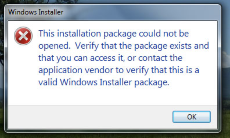 This article contains troubleshooting informationThe installation package could not be opened. Contact the application vendor to verify that this is a valid Windows Installer package.