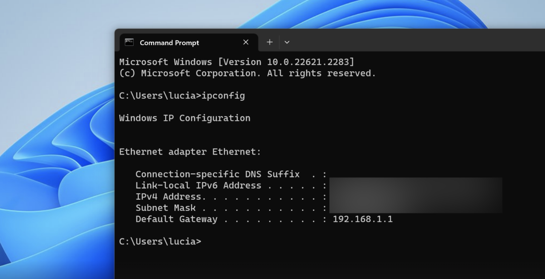 To find the IP address of your router on Windows, open the “Command Prompt” and type in ipconfig. Your router's IP address will be the Default Gateway: