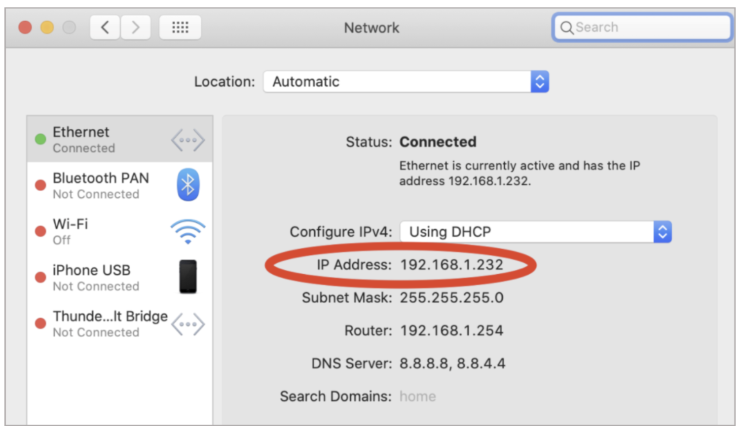 To find your computer’s IP address and MAC address, go to System Preferences > Network.