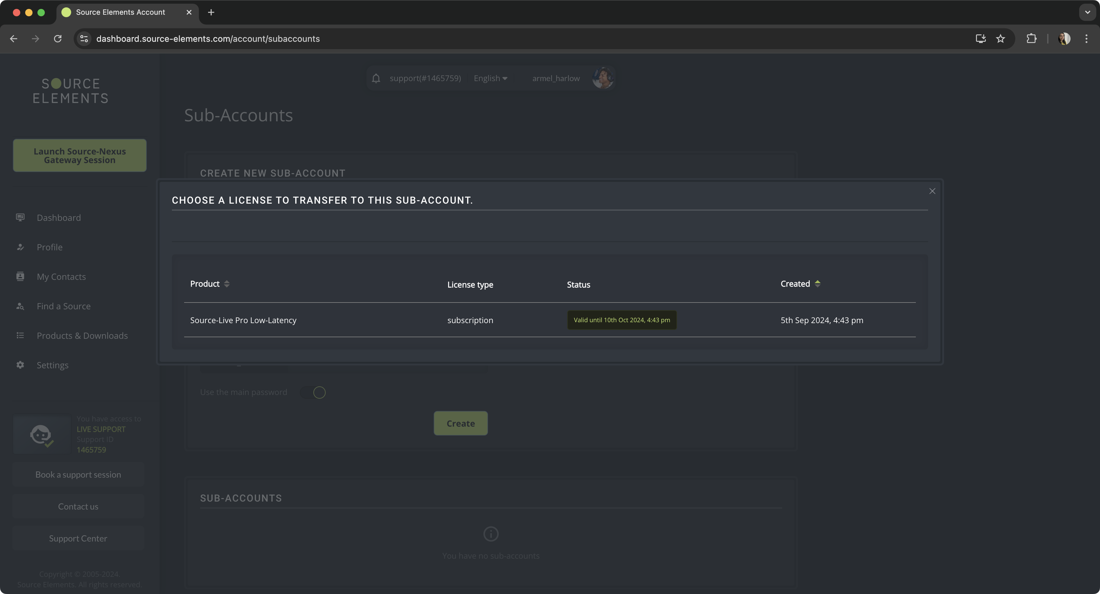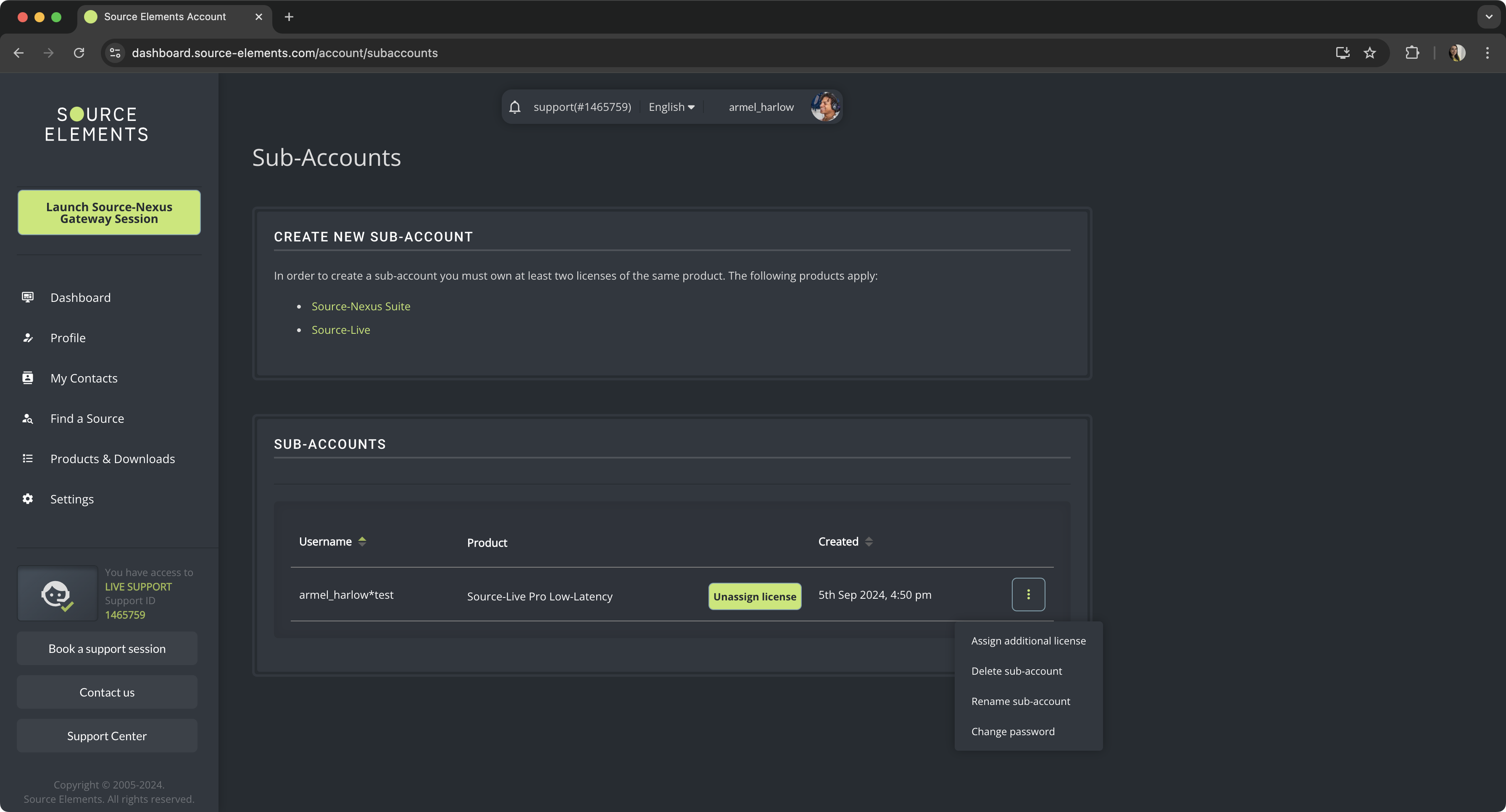 - Assign additional license: sub-accounts can have one or more eligible licenses (Source-Nexus Suite and Source-Live).