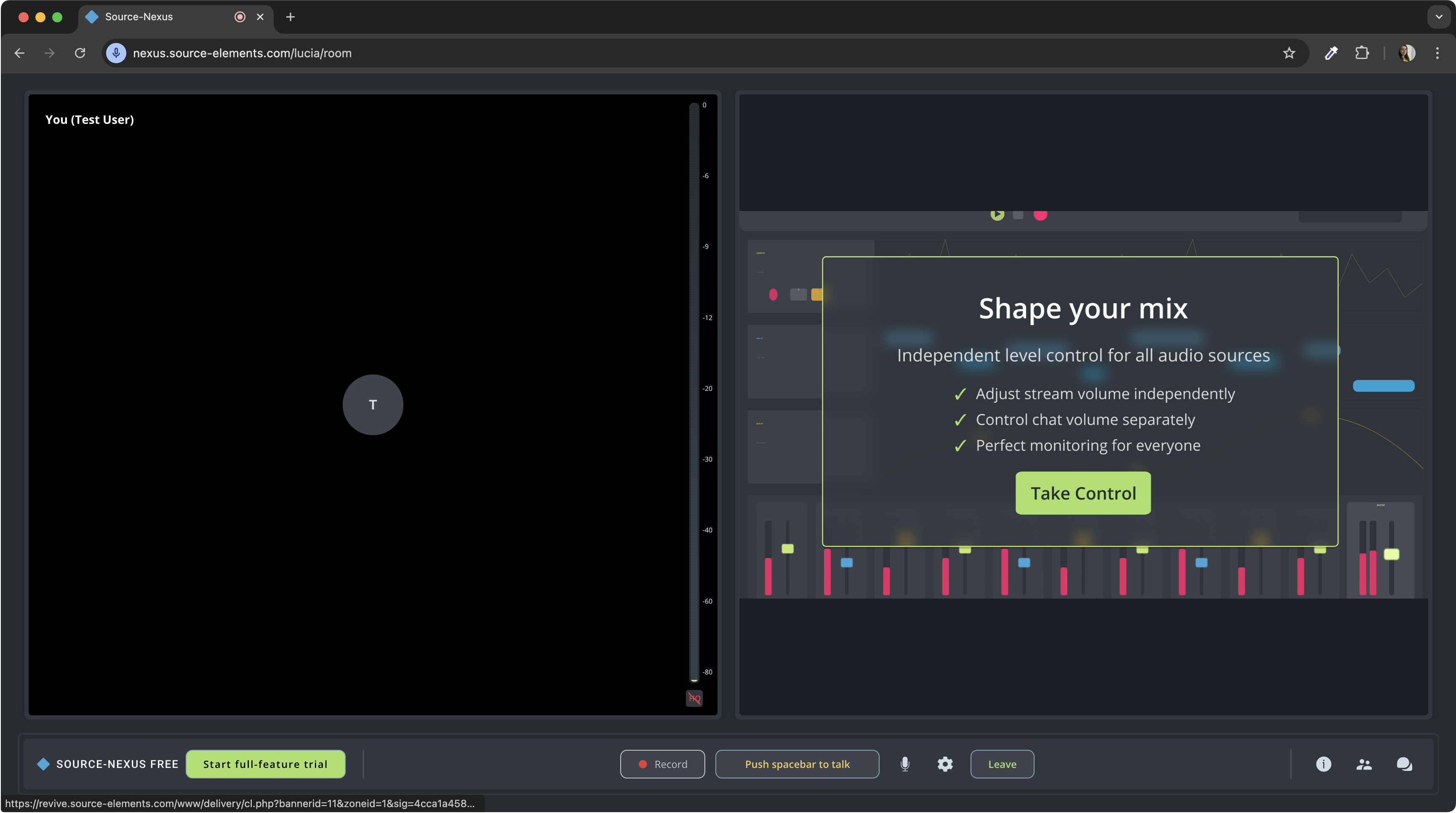 Taking over the reigns of the 10-year-old service Source-Connect Now, Source-Nexus Free allows everyone to access the highest possible audio quality between browsers. Belonging to the Source-Nexus Suite family, Source-Nexus Free is an accessible, free version of the Gateway that works with any Source Elements account, no license required.