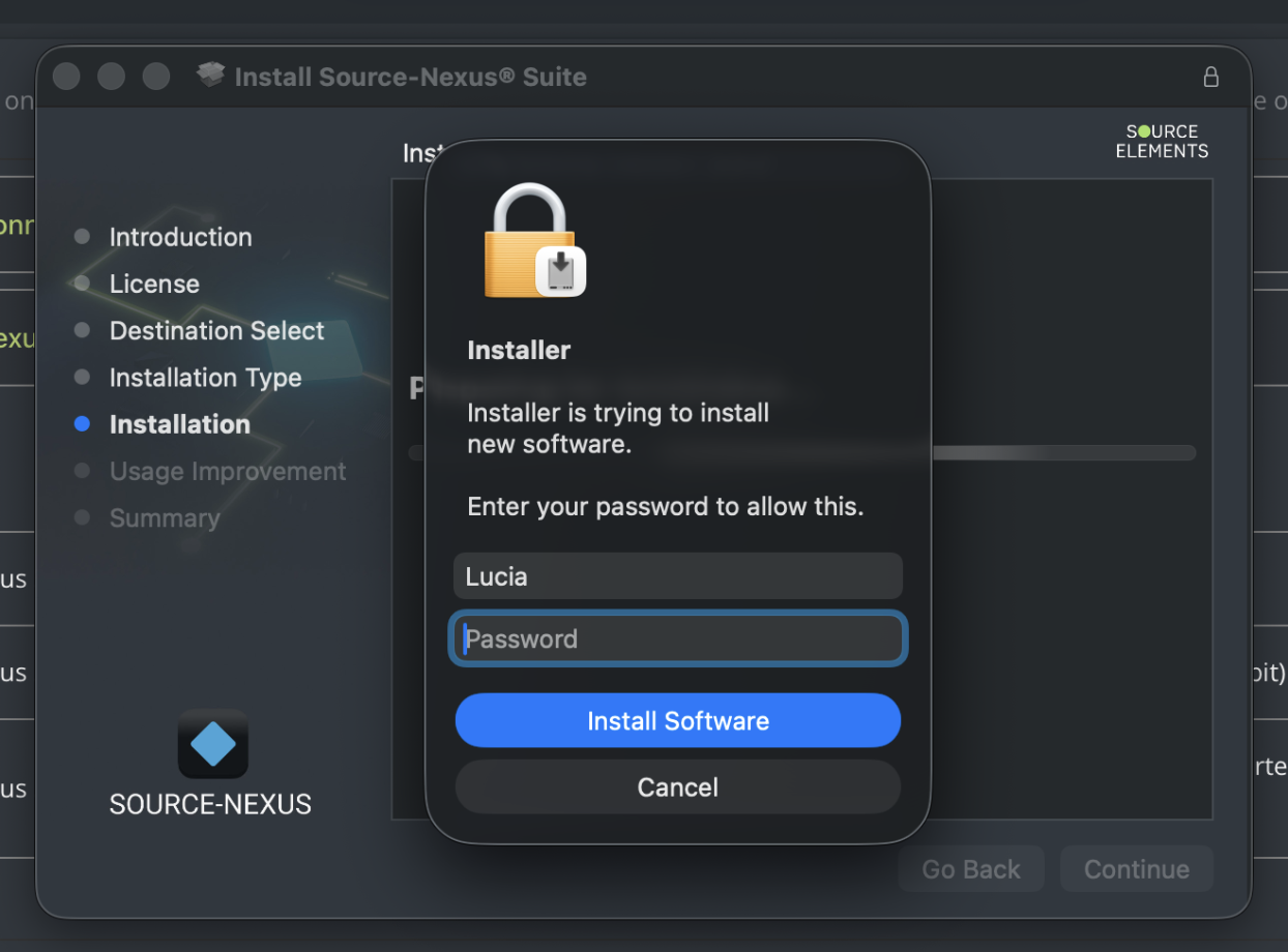 A partir de macOS Ventura, existe, entre otras cosas, una nueva opción de privacidad llamada "Administración de aplicaciones" para ciertos instaladores. Algunos productos de Source Elements podrían mostrar el siguiente mensaje al instalarse en macOS Tahoe: