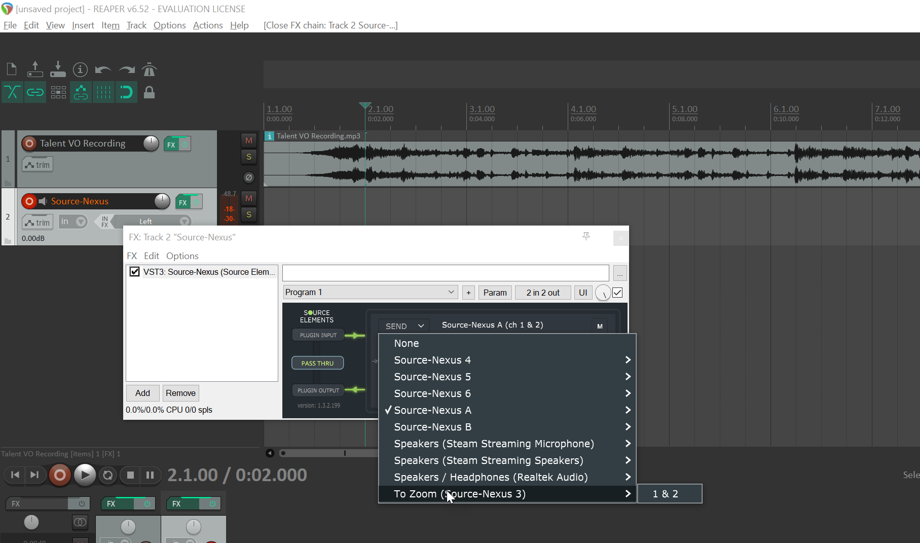 En una DAW , el dispositivo Nexus I/O se llamará "To-Zoom ( Source-Nexus 3)" y "From-Zoom ( Source-Nexus 4"):