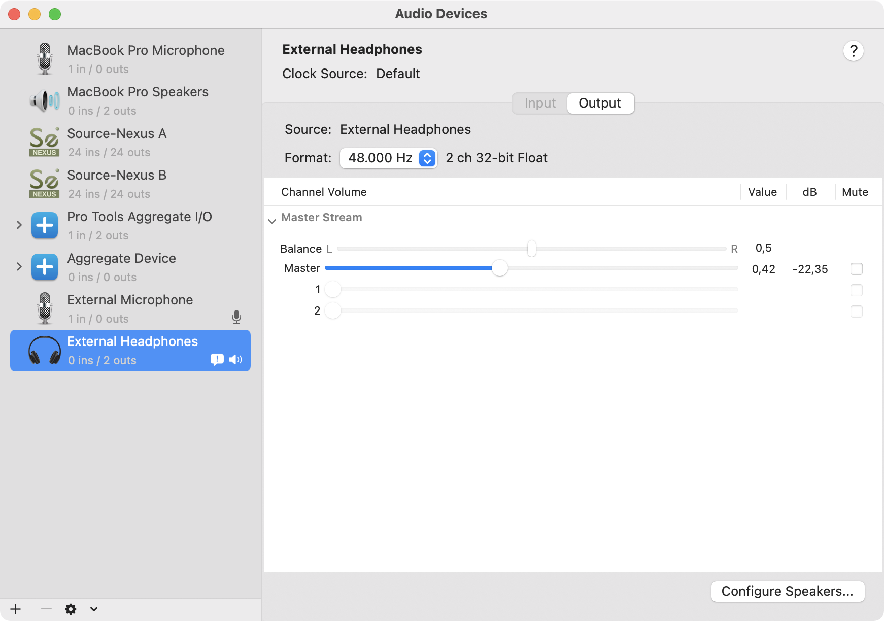 Nota : necesitarás tener tus dispositivos creados en tu Mac antes de abrir la sesión DAW .