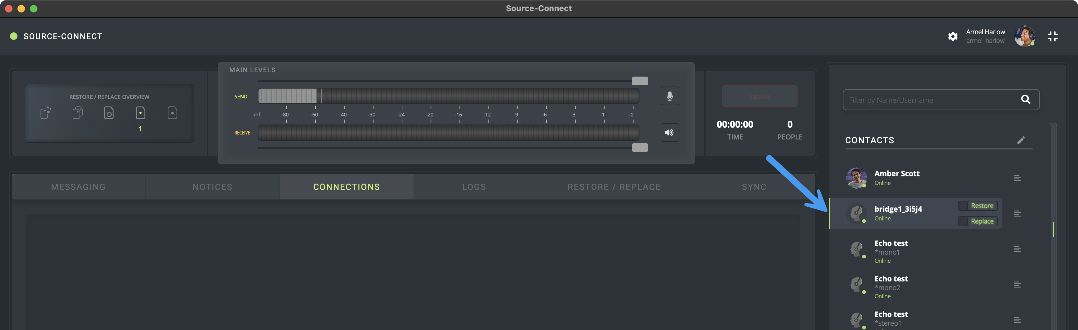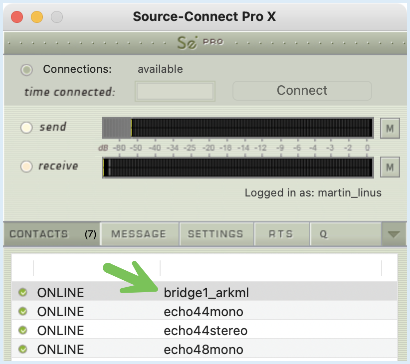 Tanto usted como el usuario de Source-Connect 3 necesitarán conectarse a su puente personal (al que se le asignará un nombre).