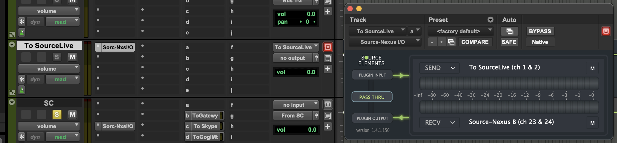 Pista Skype: agregue un complemento de Source-Nexus I/O mono con la siguiente configuración: