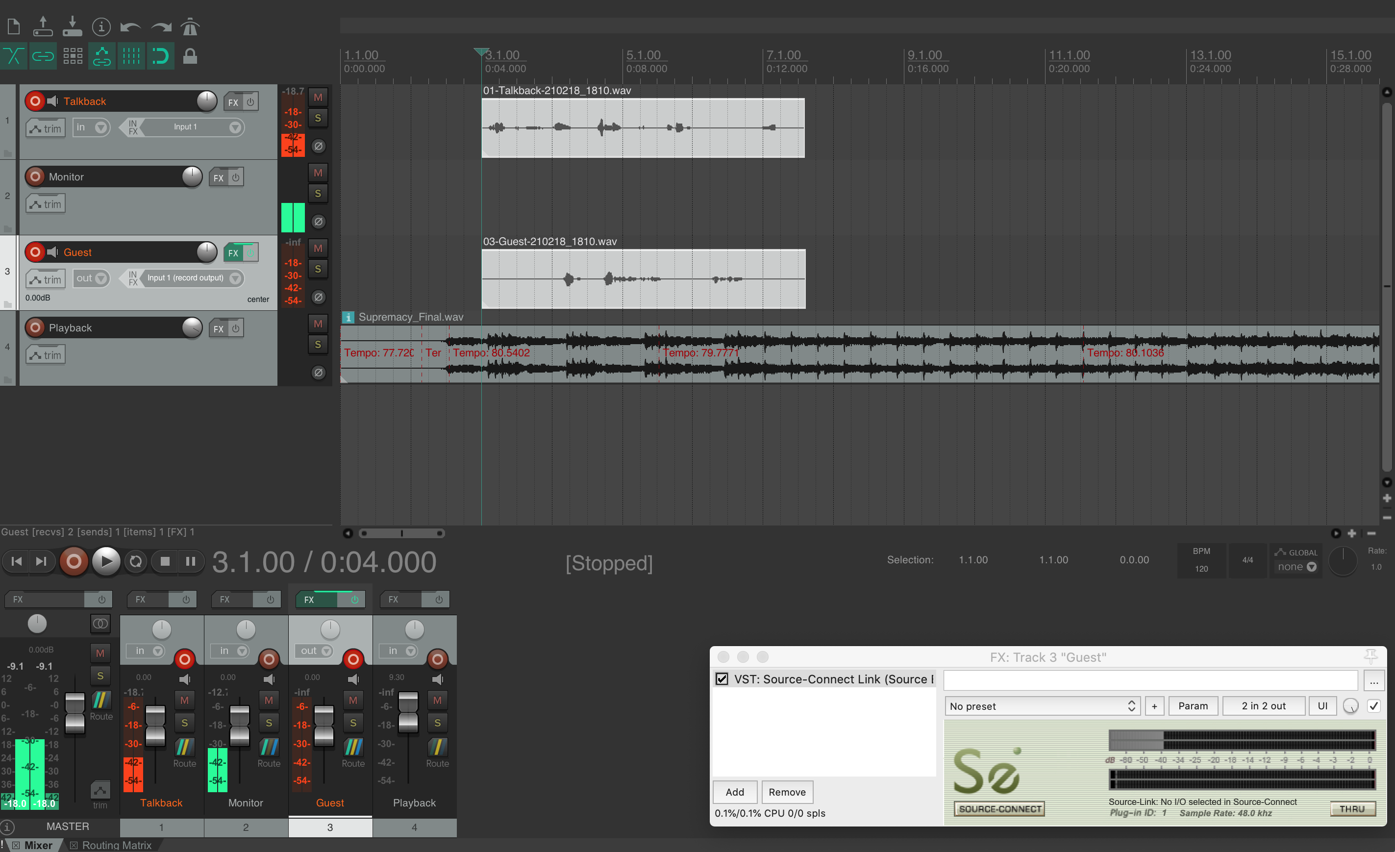 Con Source-Connect y Reaper combinados, es posible grabarse a usted mismo y a su talento, enviar música de fondo y reproducir durante una sesión. Con el fin de hacerlo: