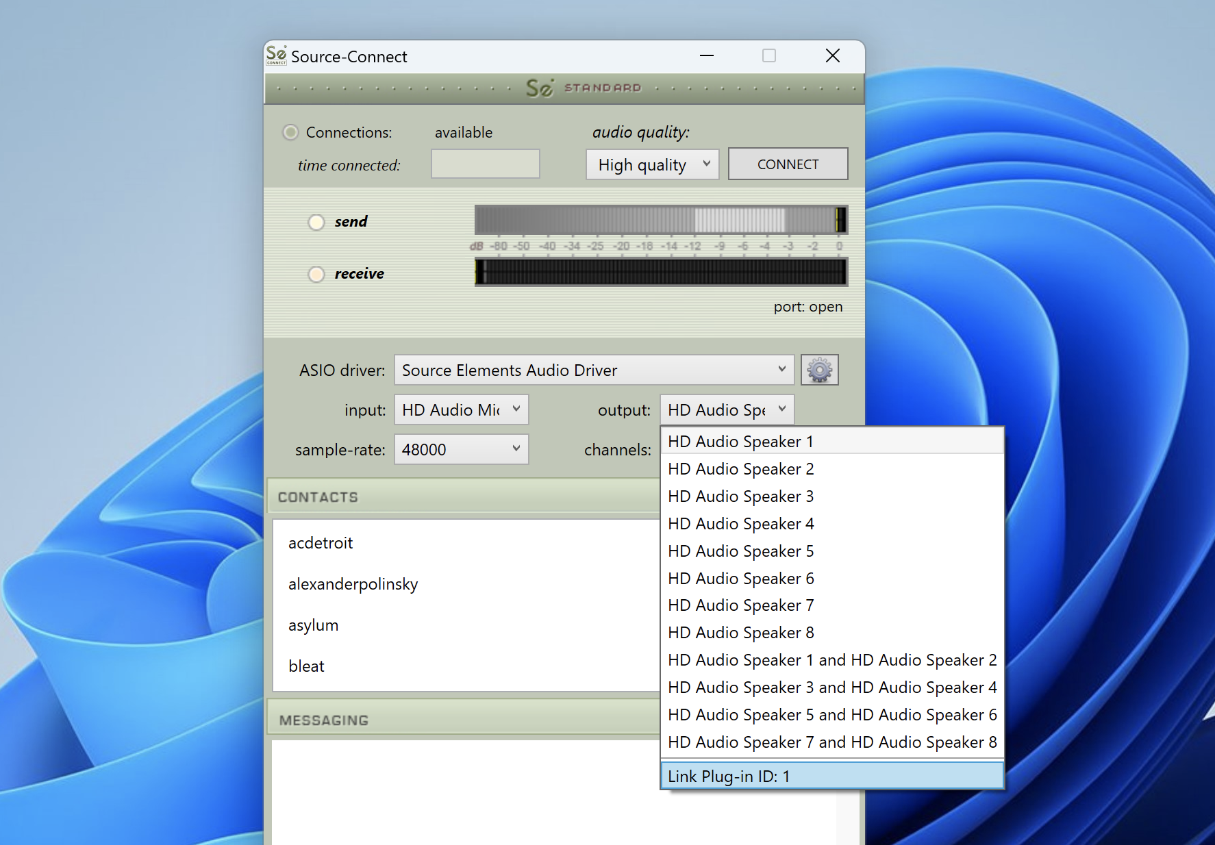 9. Abra Source-Connect y cambie las entradas y salidas a Source-Connect Link .