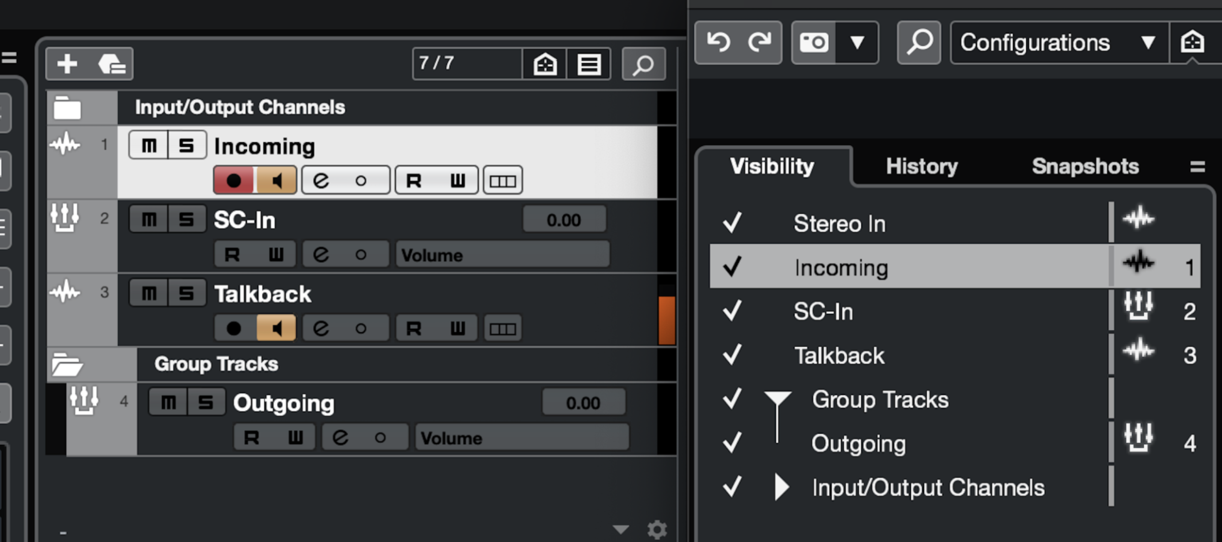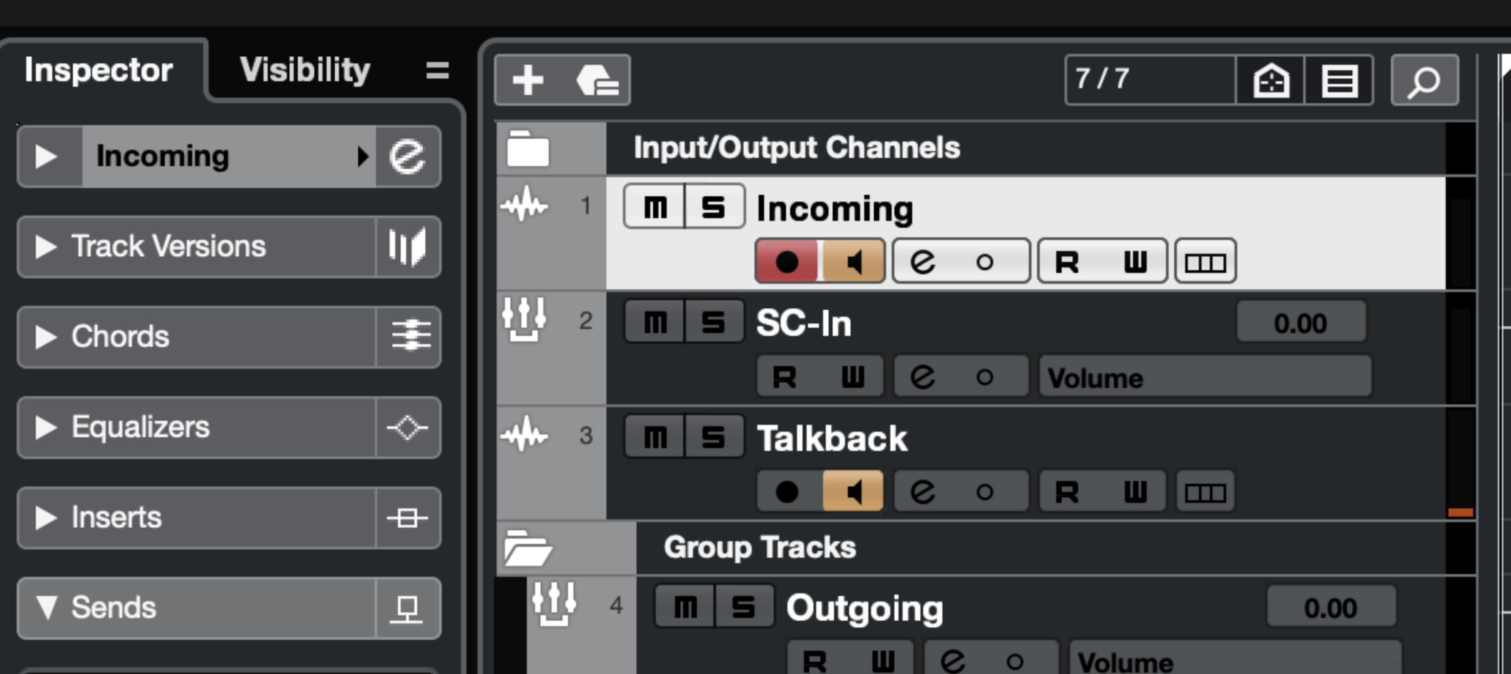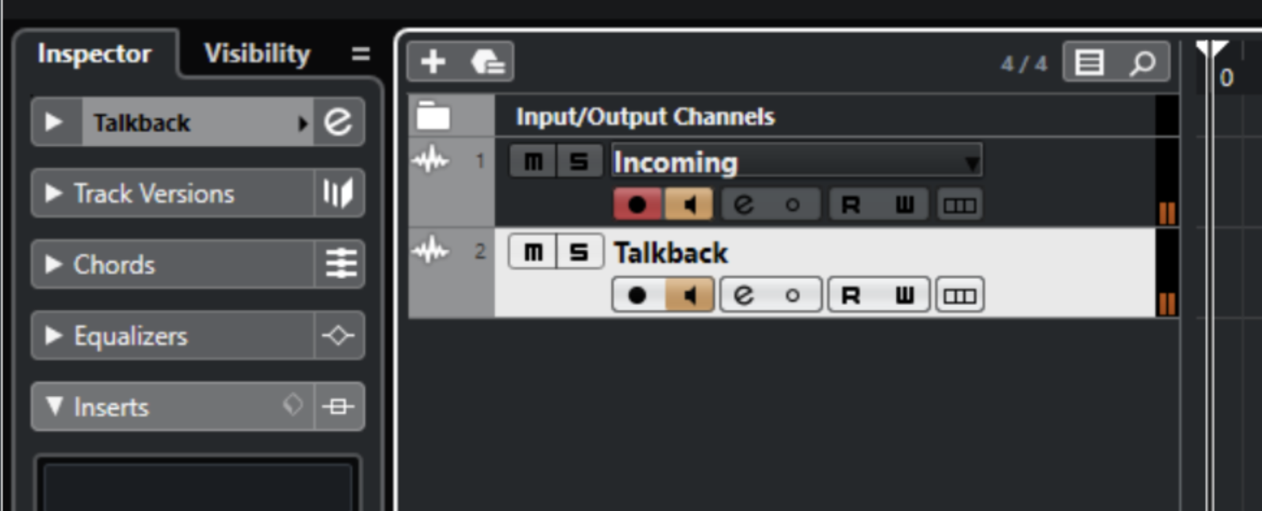 - Ahora verá los canales de entrada a la izquierda de los canales entrantes, talkback y salientes. Sus fuentes de entrada recibirán nombres de acuerdo con la ventana Conexiones VST (F4).