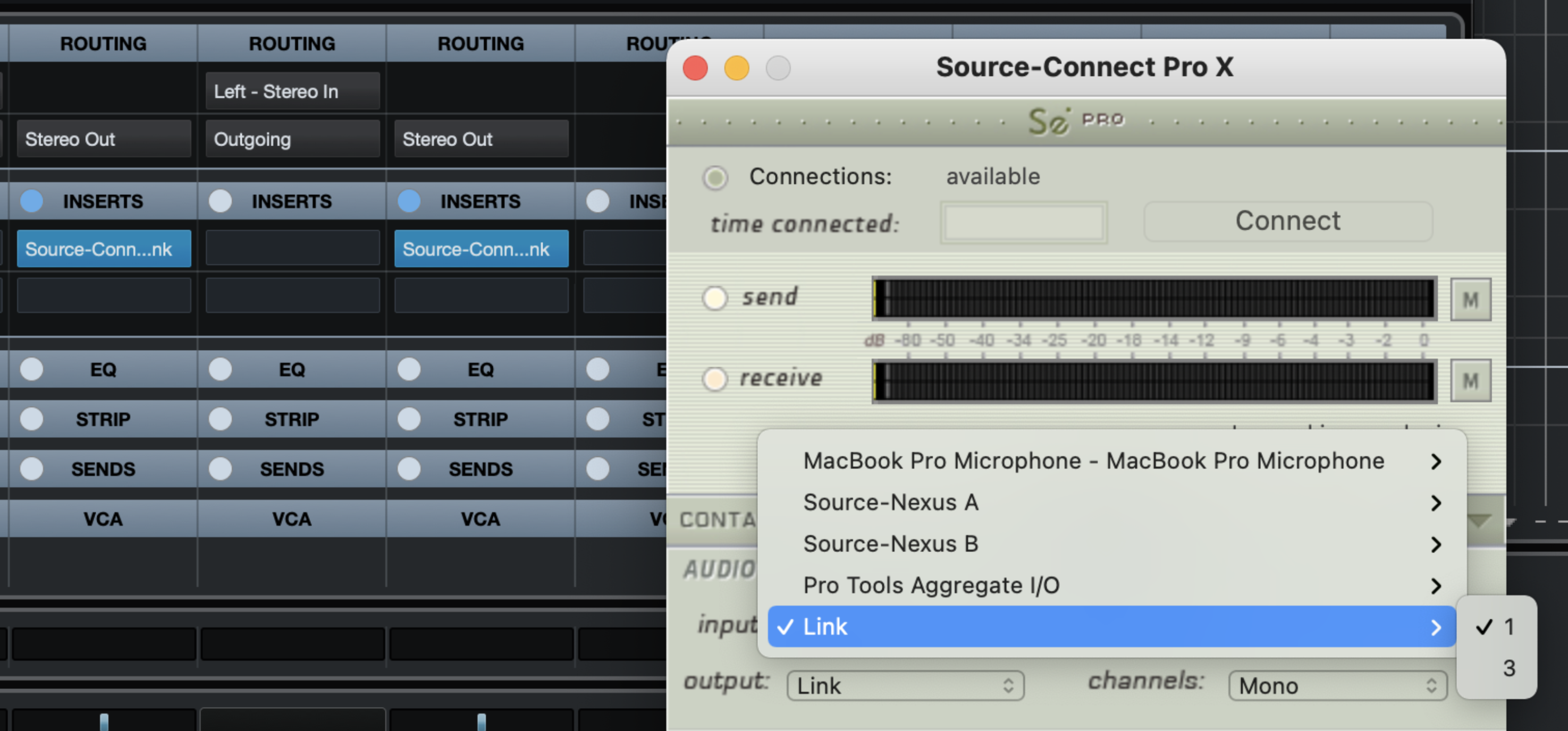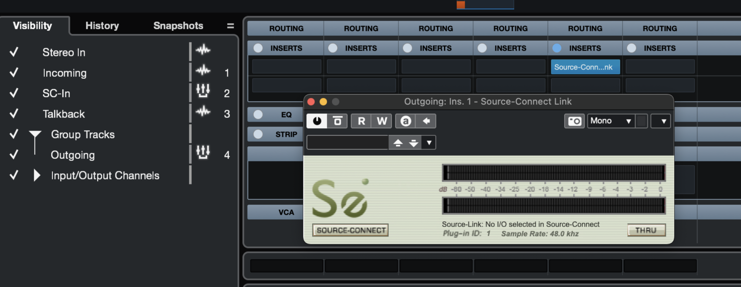 - Abra Source-Connect y configure su configuración de E/S según los complementos que configuró en los canales SC-In y Outgoing.