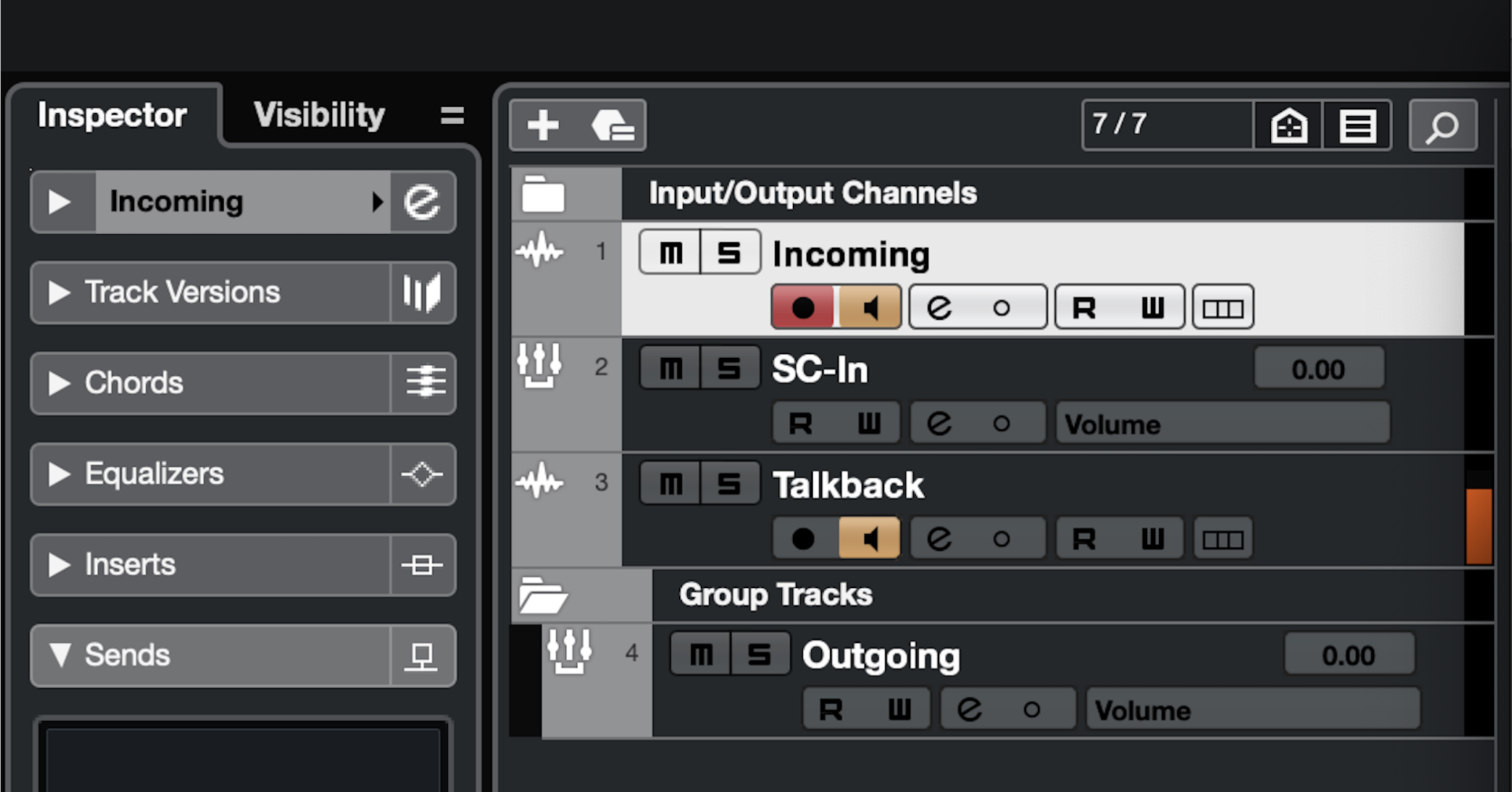 - Ahora agregue una pista de canal de grupo mono (Proyecto > Agregar pista > Grupo) y asígnele el nombre “Saliente”.