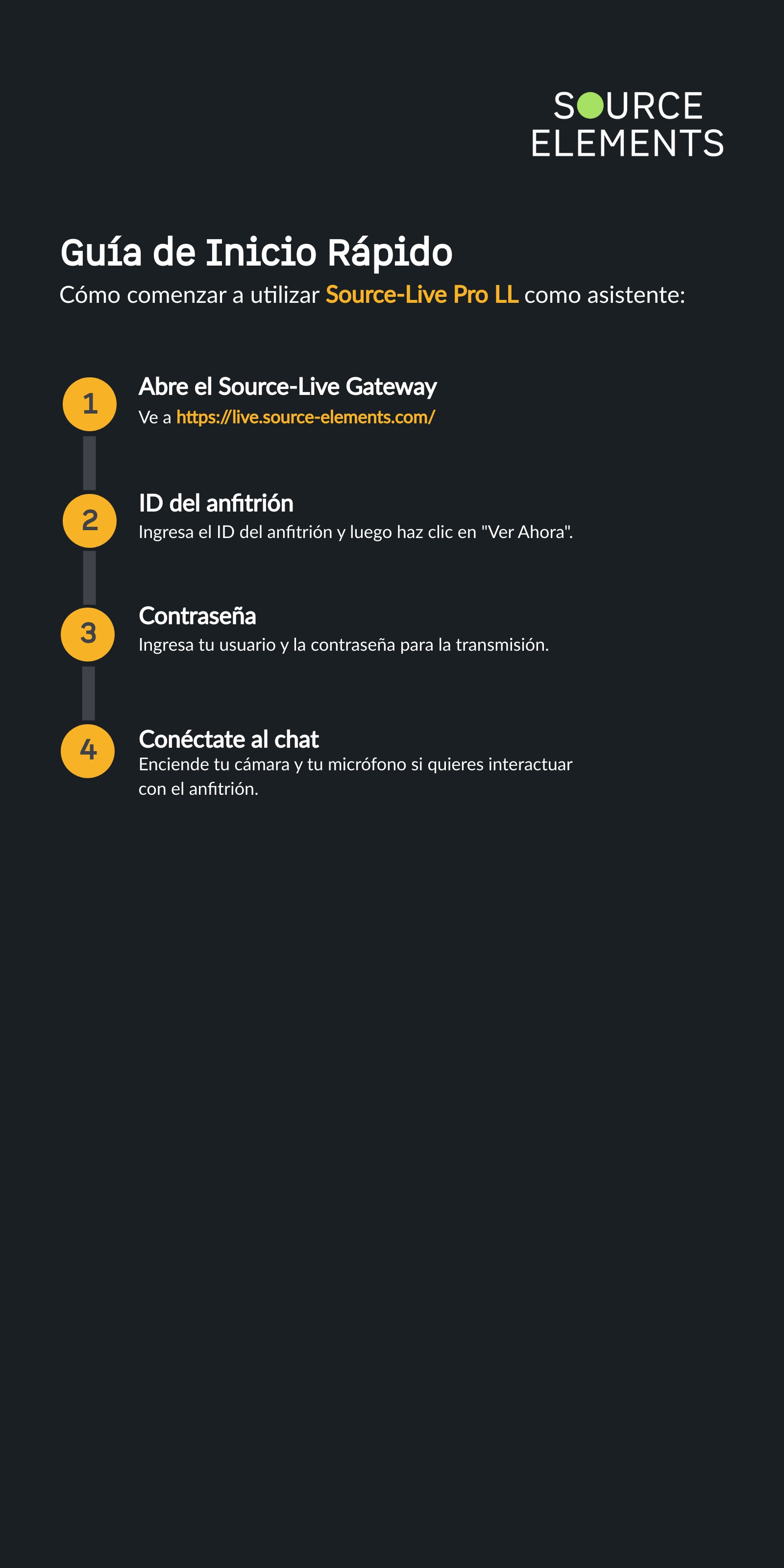 | Cómo comenzar con Source-Live Pro LL como anfitrión | Cómo comenzar con Source-Live Pro LL como asistente |