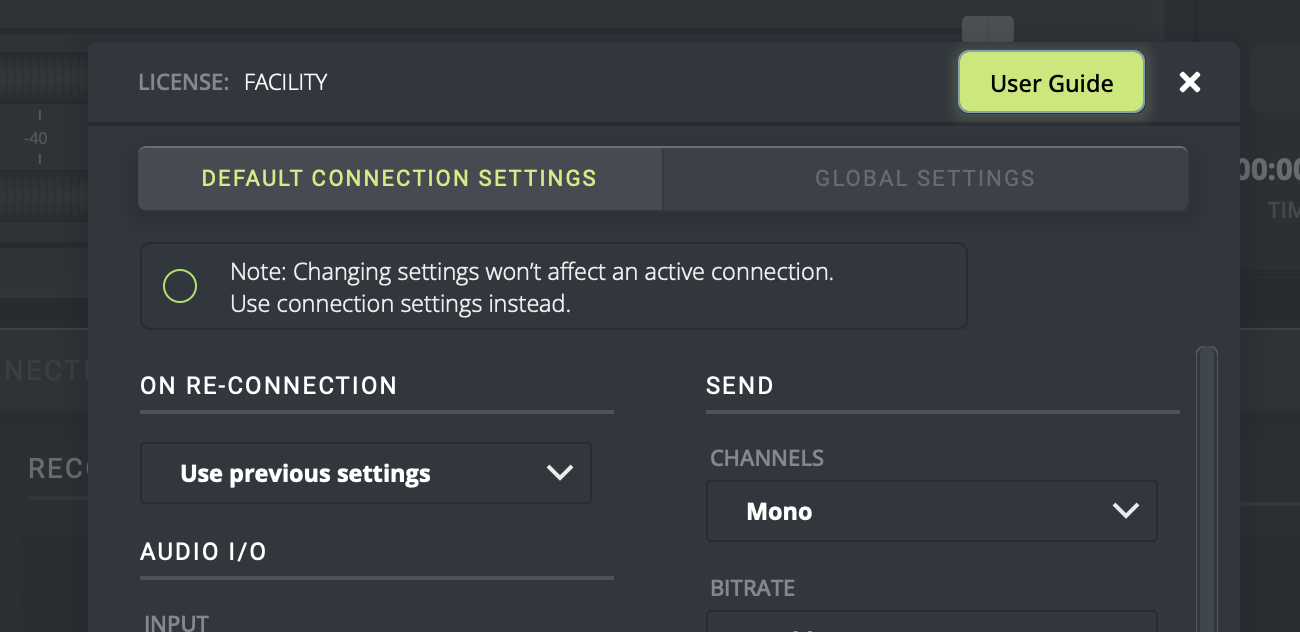 f. En la sección de AUDIO I/O, configura CHANNELS a Mono.