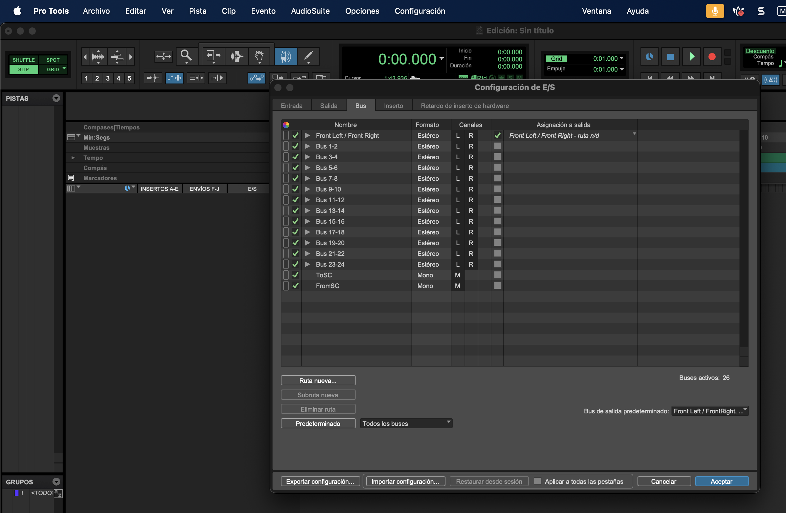 - Configuración de Pro Tools.