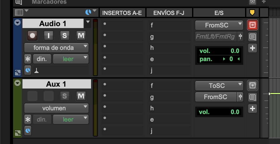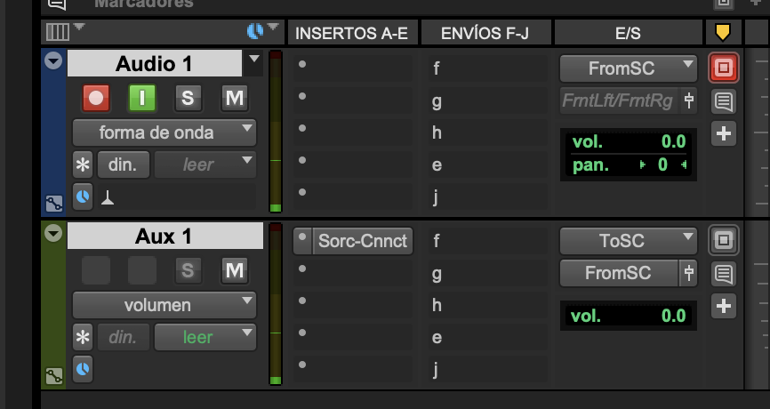 - En la entrada auxiliar “Aux1”, configura la entrada a “ToSC” y la salida a “FromSC”.