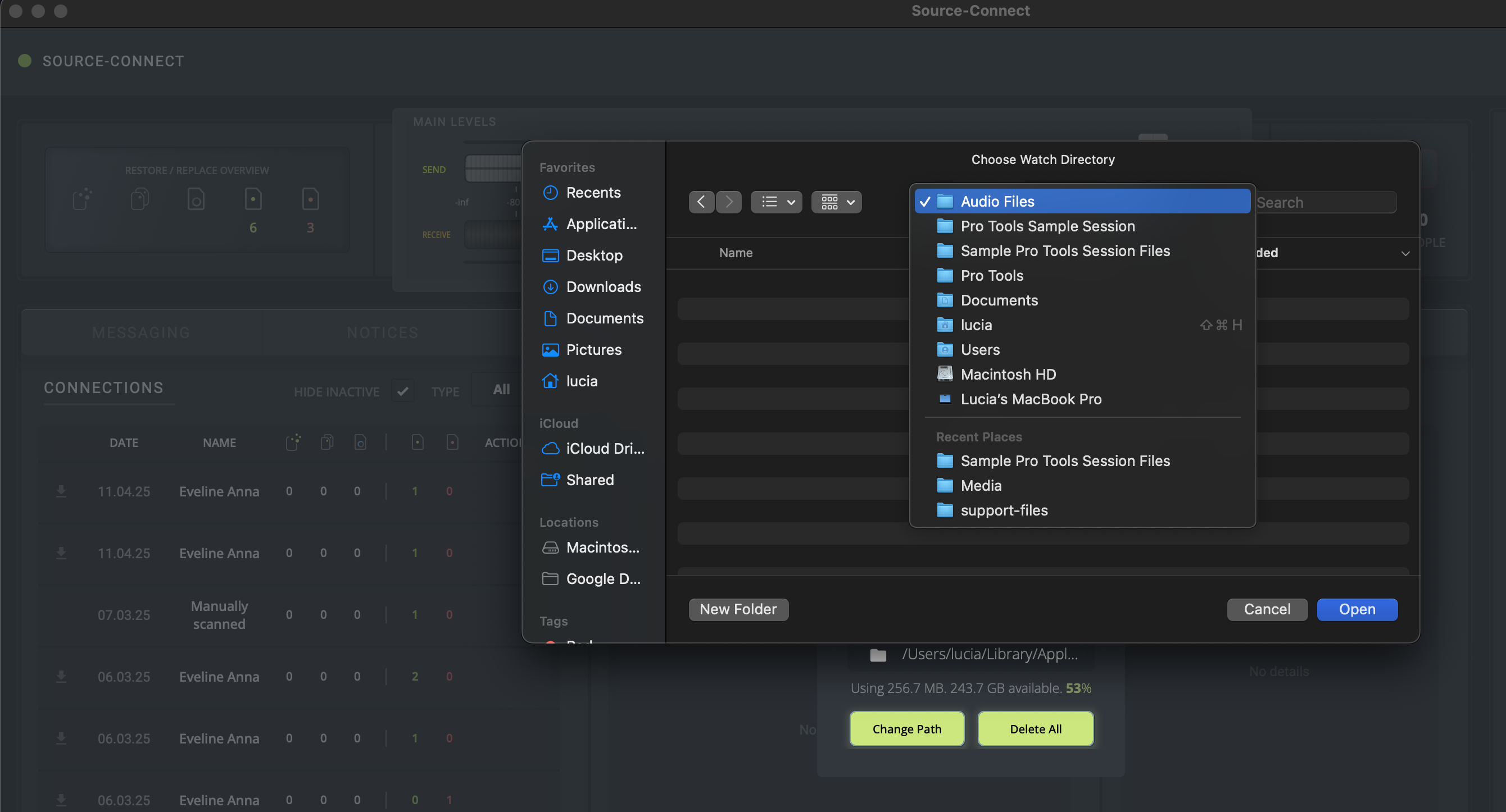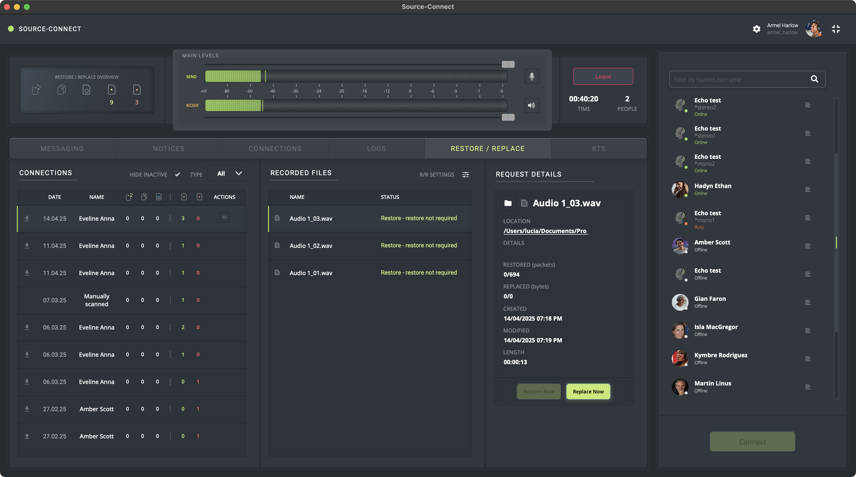 4. Espera a que la grabación se muestre en Source-Connect 4