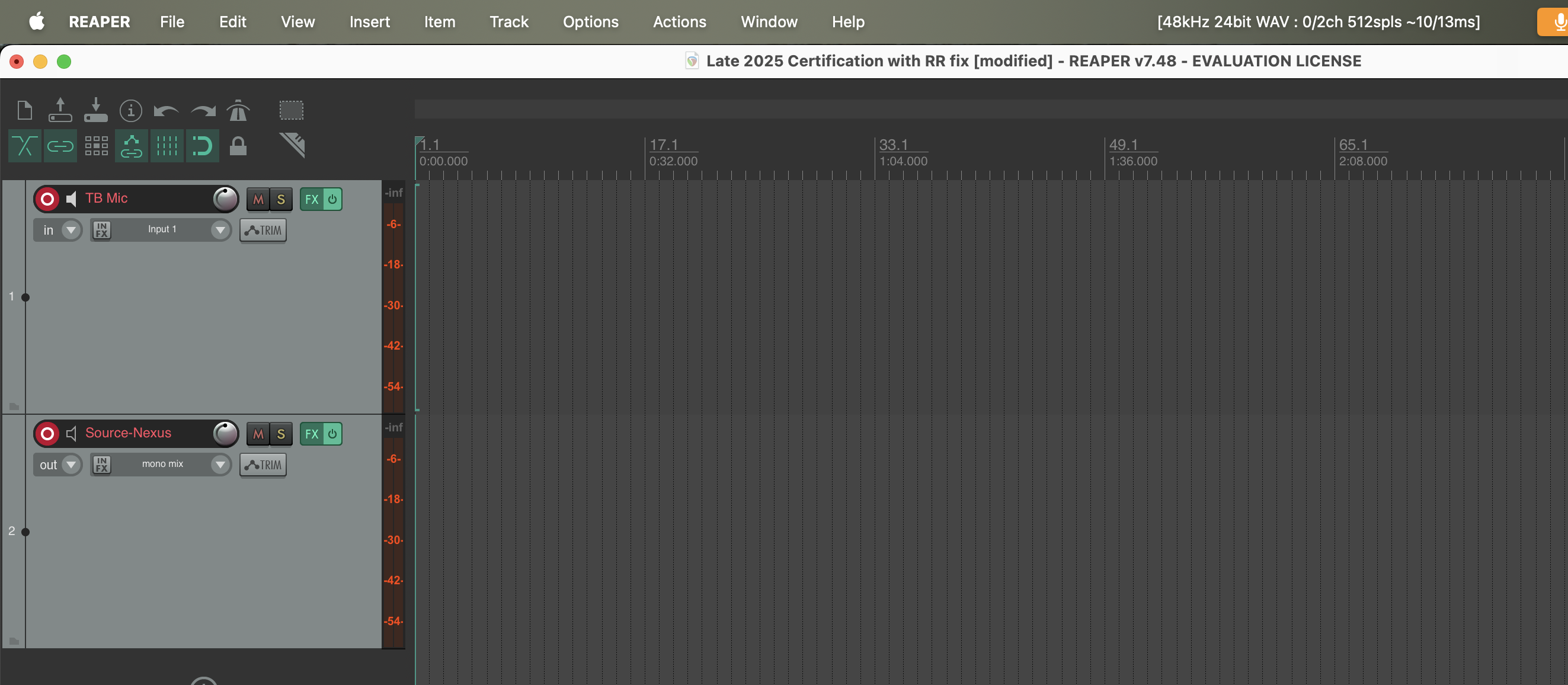 e. Ve a Pista > Insertar nueva pista. Esto agregará una nueva pista a tu proyecto. Repite este proceso de nuevo para tener dos pistas. Nombra a las pistas “TB Mic” y “Source-Nexus”.