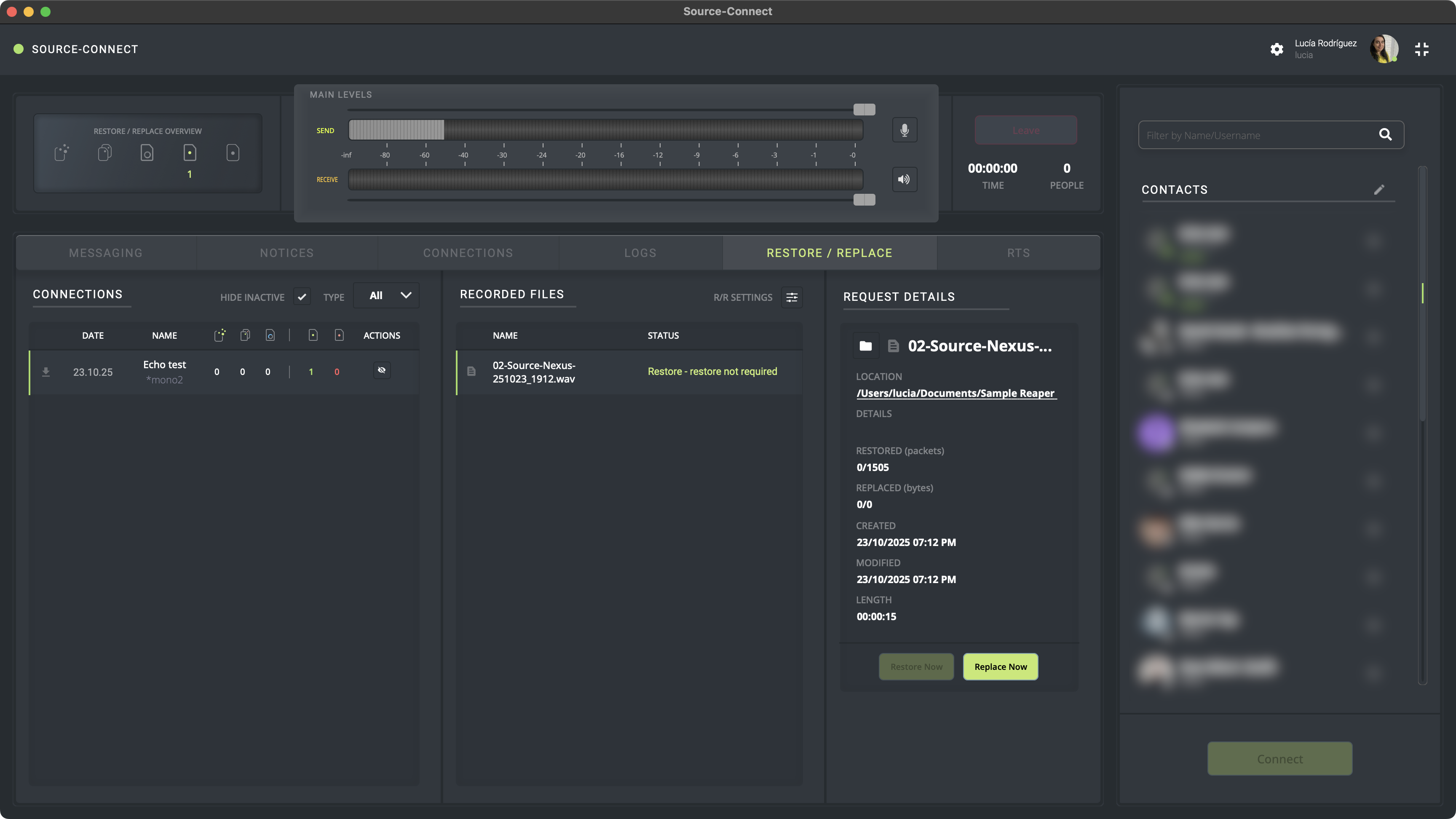 4. Espera a que la grabación se muestre en Source-Connect 4
