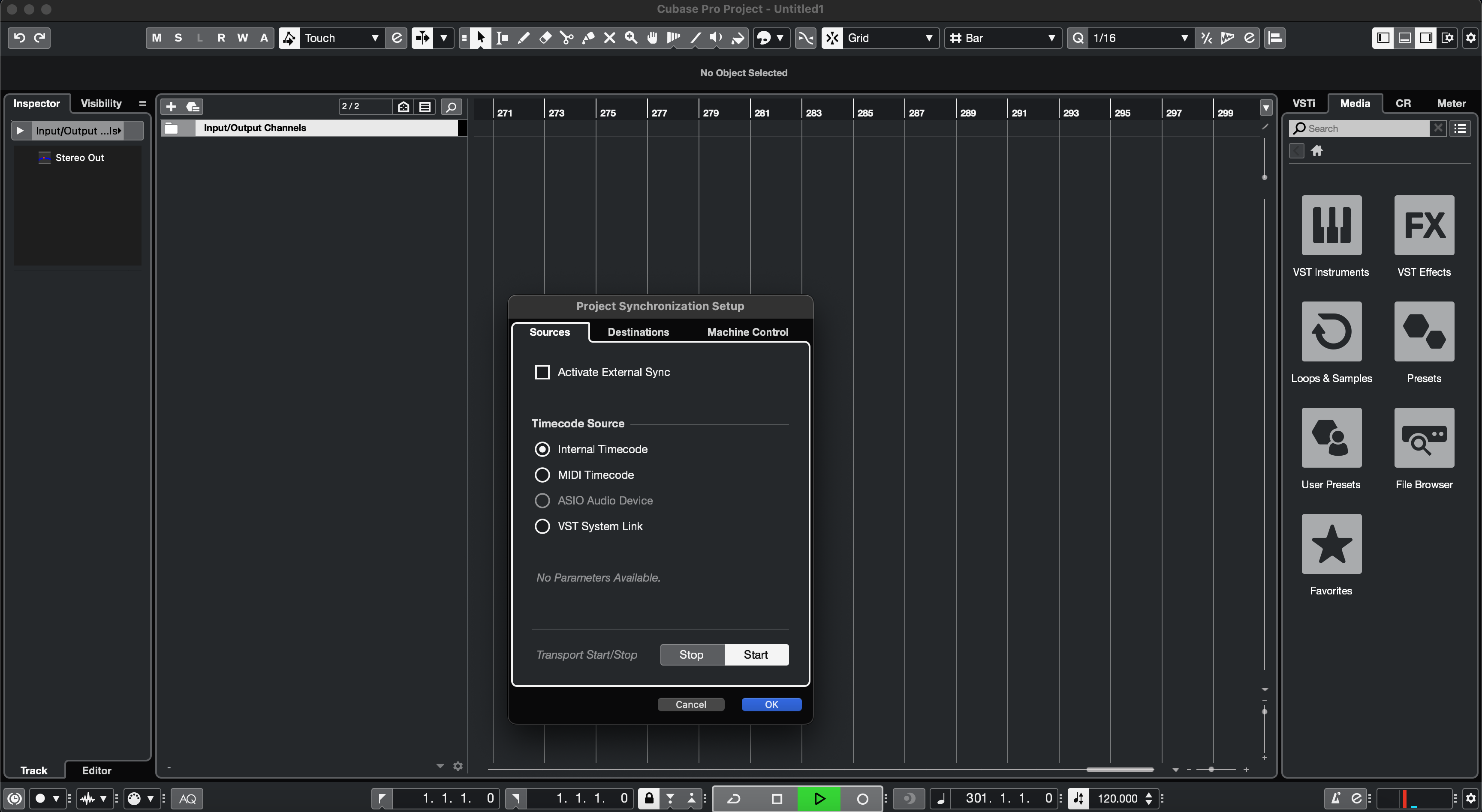 - En Cubase/Nuendo, vaya a Transporte > Configuración de sincronización de proyectos: