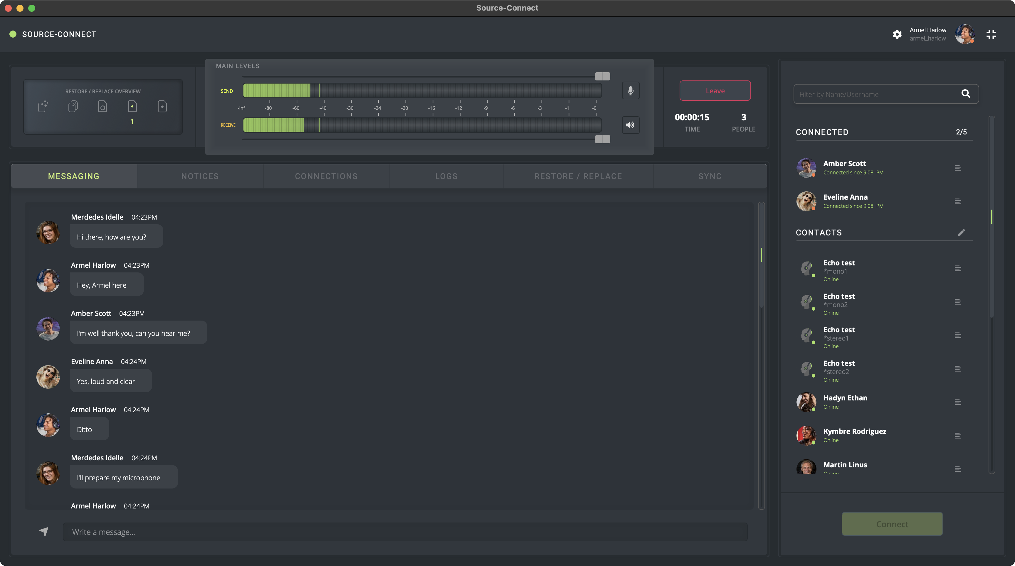 Mensajería instantánea en Source-Connect Studio/Facility