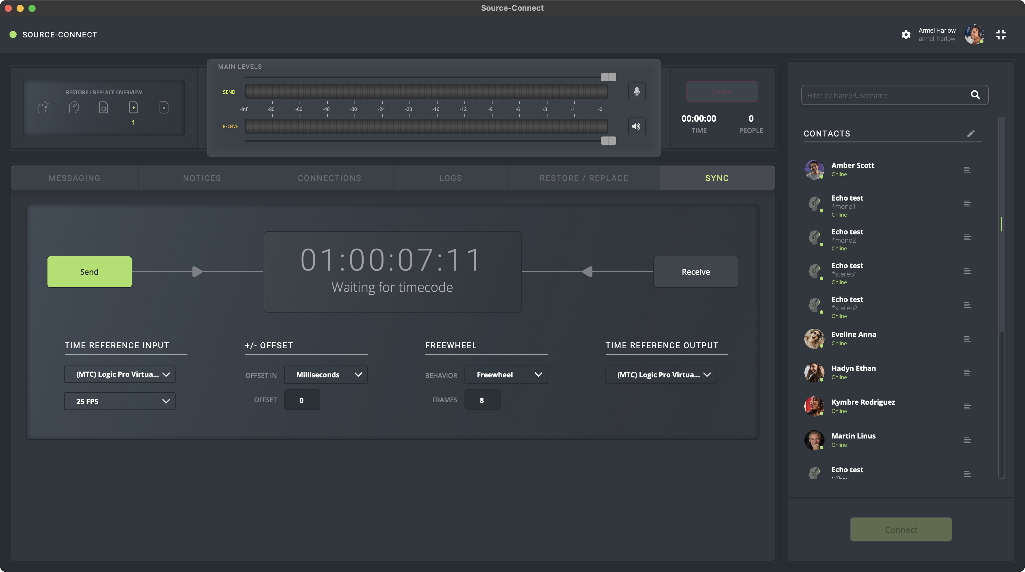 - Envío y recepción de código de tiempo con Source-Connect Studio/Facility.