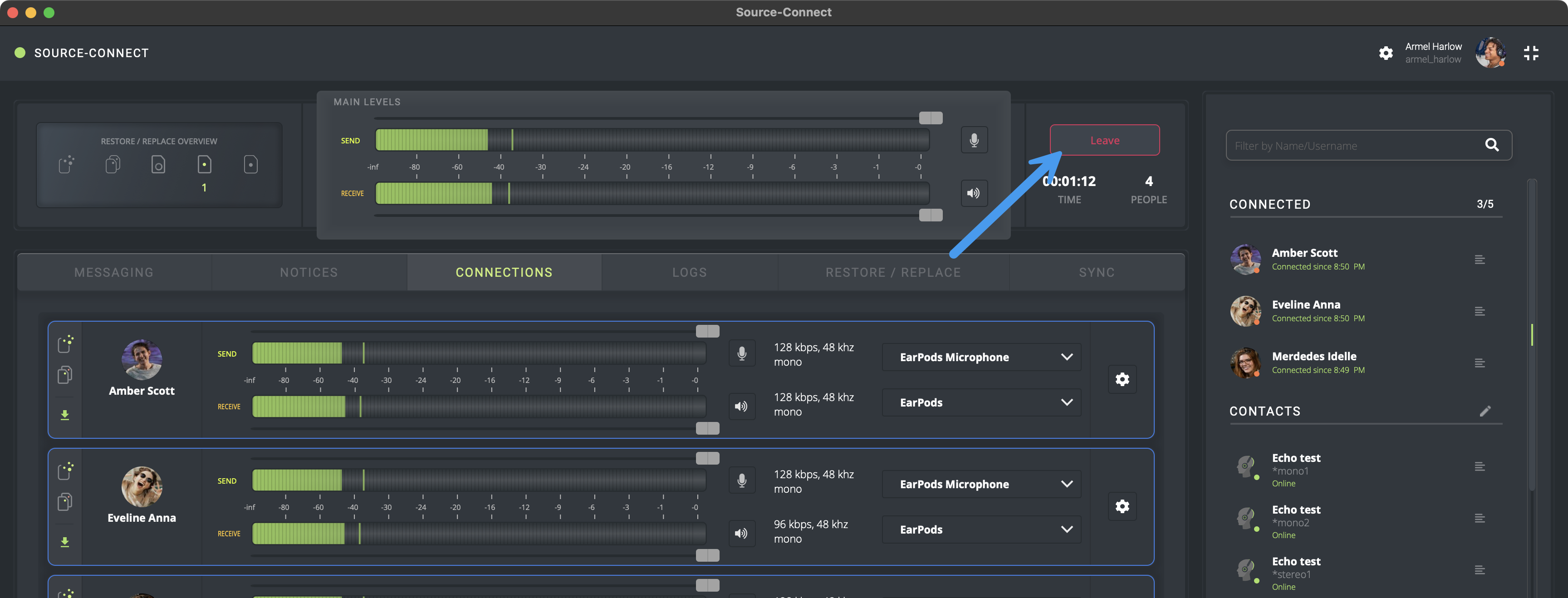 Una sesión de Source-Connect se puede detener presionando el botón "Salir", cerrando sesión o saliendo de Source-Connect.