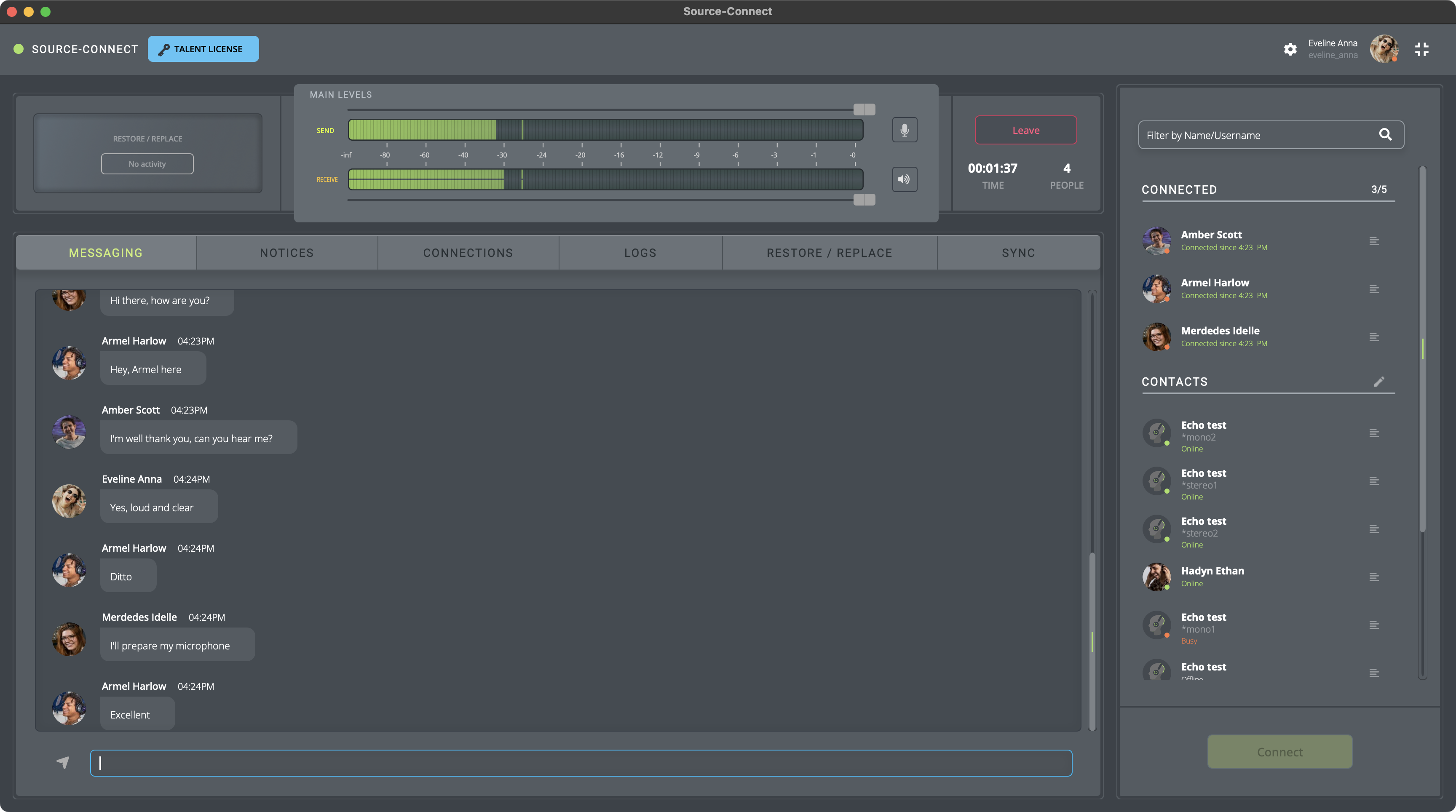 Durante una sesión de audio, suele ser útil intercambiar mensajes instantáneos con usuarios remotos, por ejemplo si no puede enviar o recibir una señal por algún motivo, o no desea interrumpir la señal de audio con un mensaje al otro lado. .