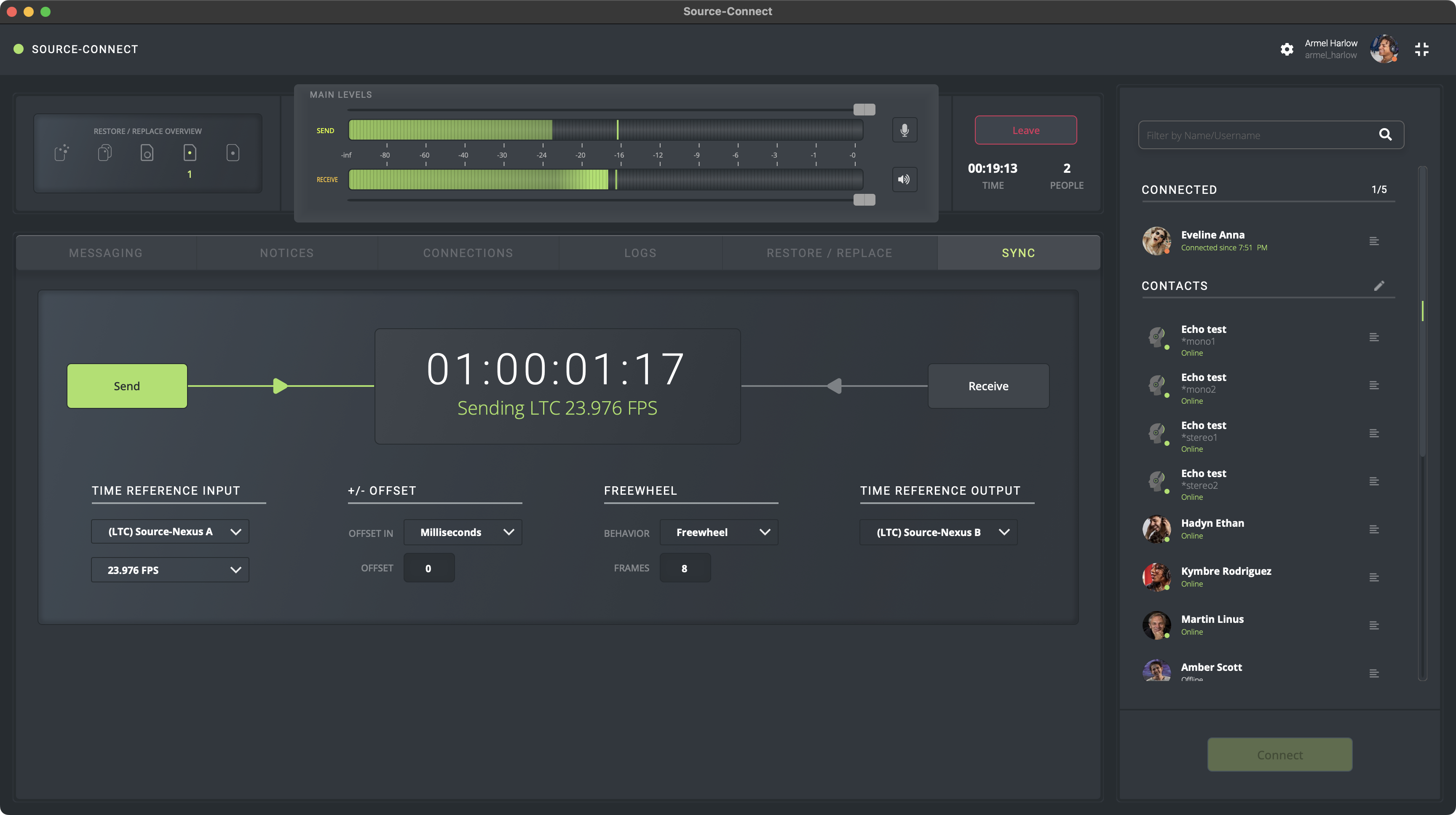 - Envío y recepción de código de tiempo con Source-Connect Studio/Facility.