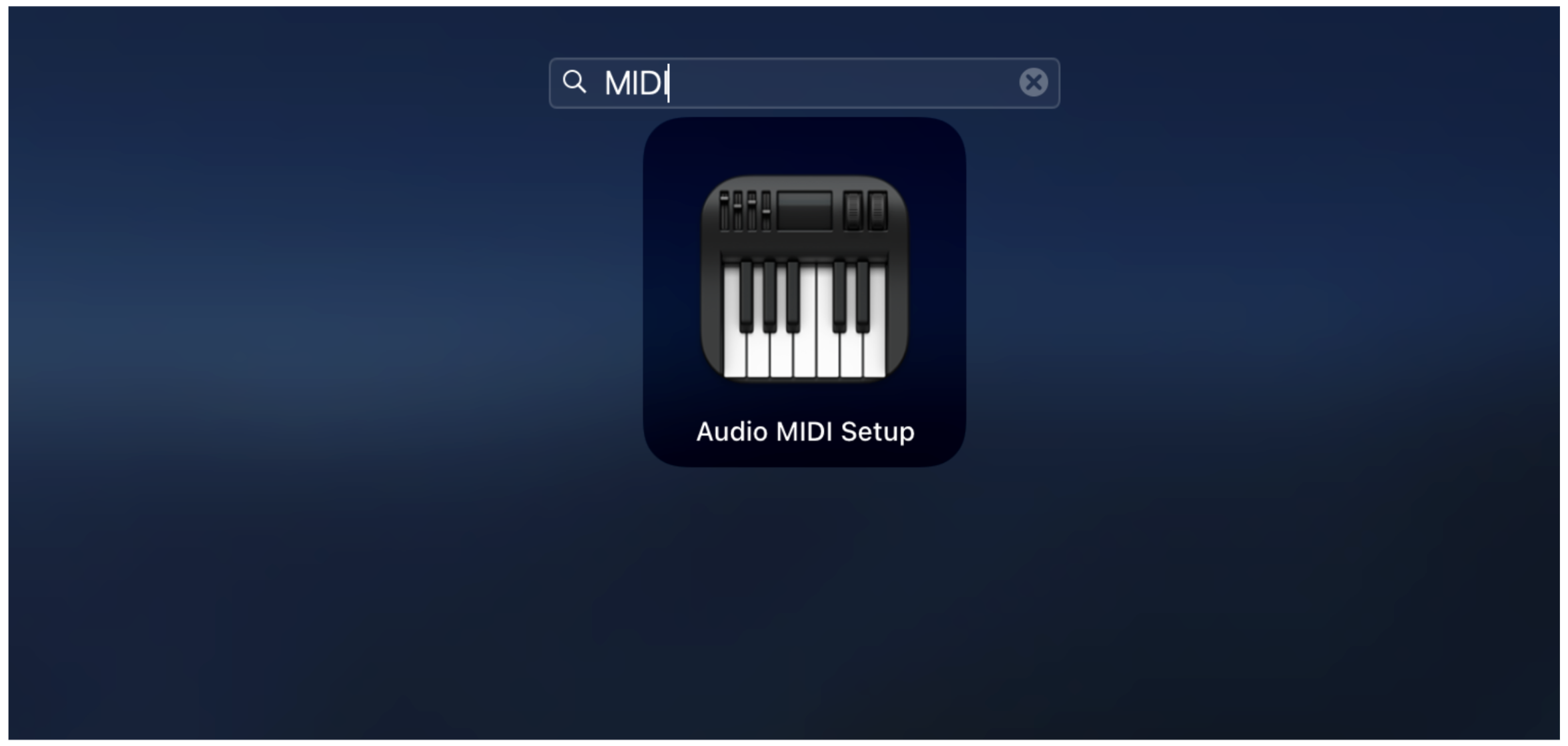 - Presione cmd + espacio y busque la aplicación "Configuración de audio MIDI". De lo contrario, simplemente busque la aplicación en su plataforma de lanzamiento.