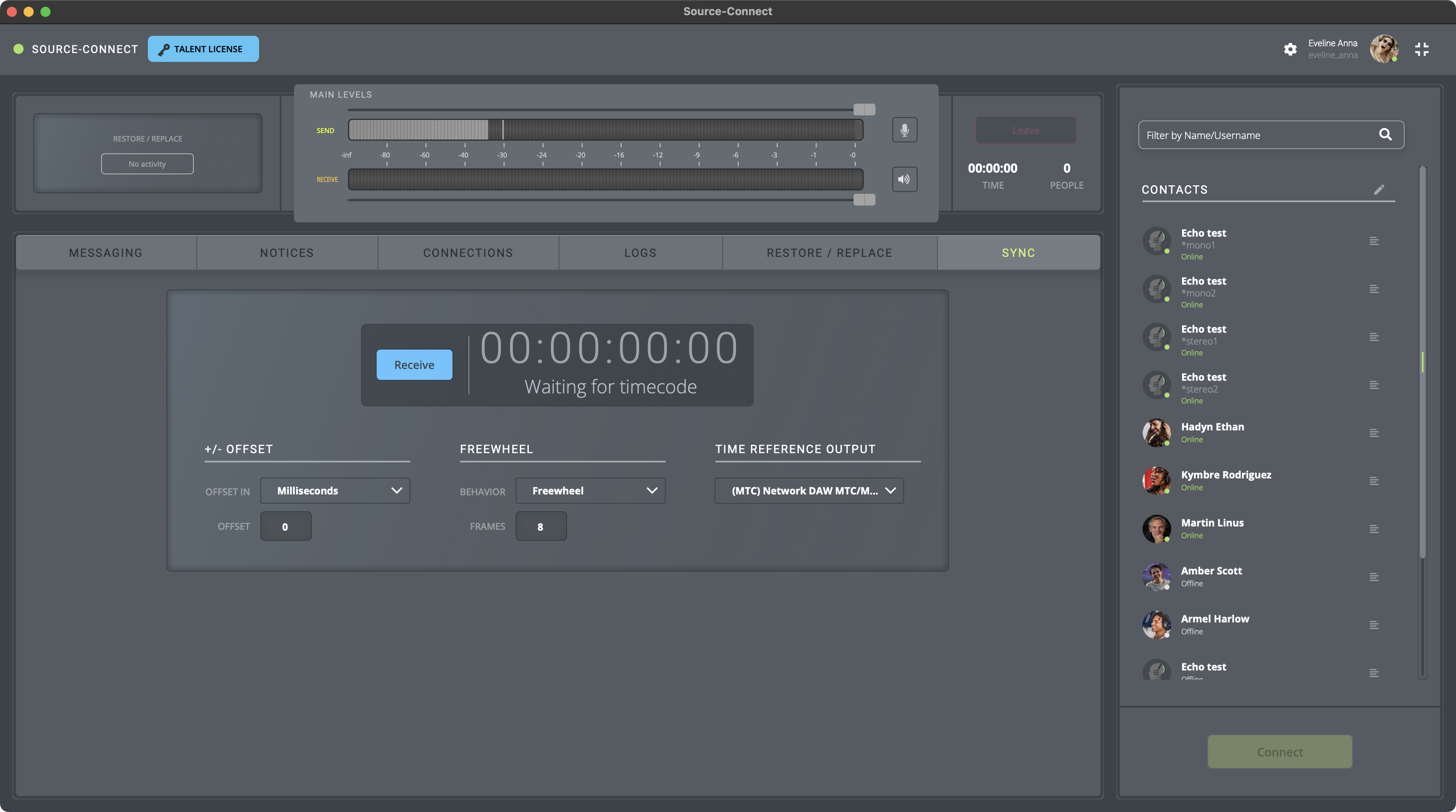 - Recepción de código de tiempo con Source-Connect Talent.