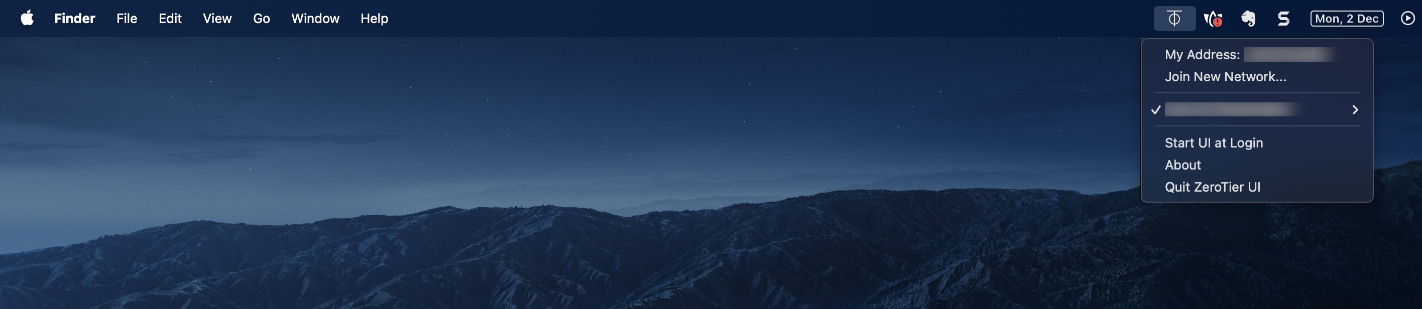Primero, debe asegurarse de tener conectado Zero Tier. Su ventana debería verse así: