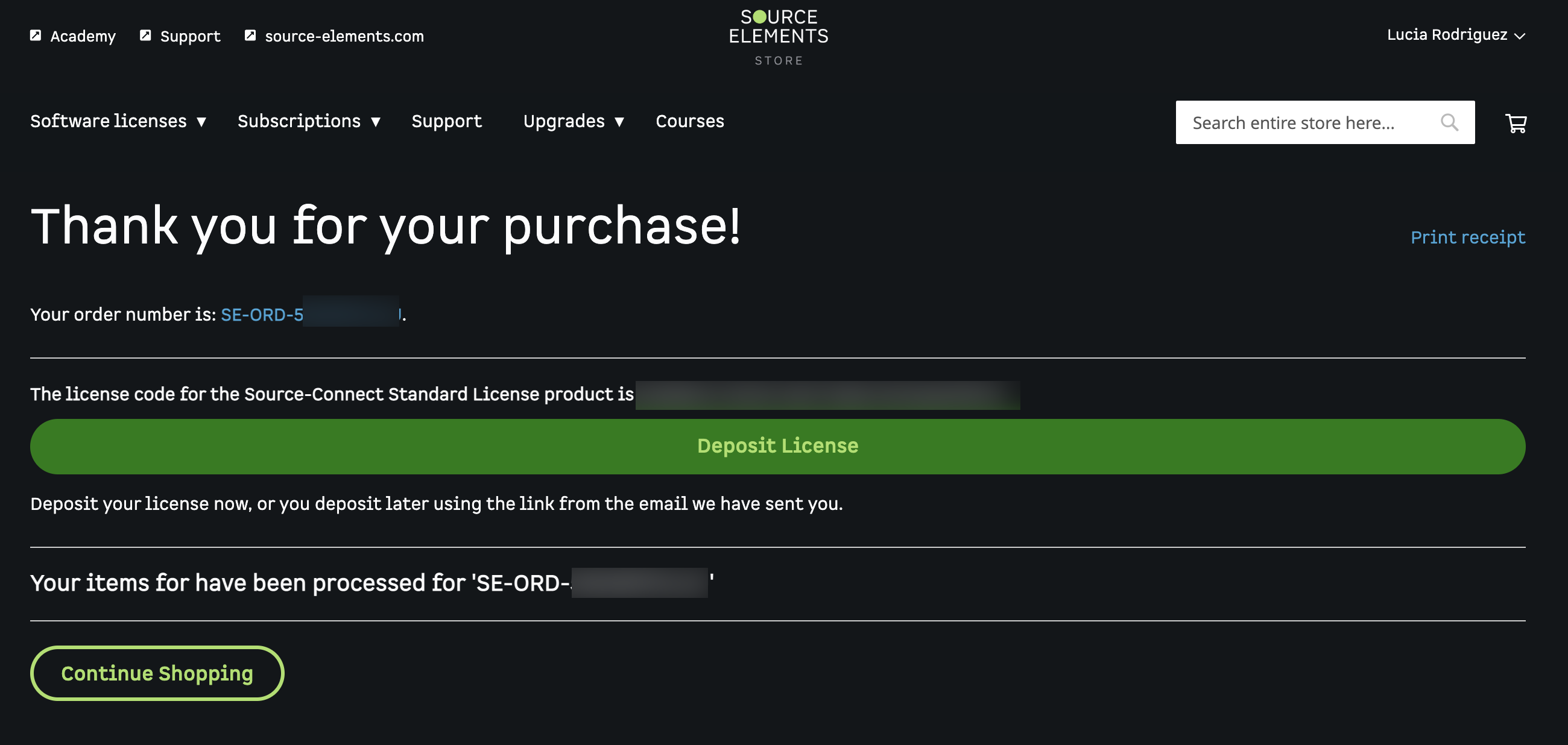 Recibirá un correo electrónico con instrucciones sobre cómo depositar su licencia recién comprada en su iLok . Si no llega nada, revisa tu carpeta de SPAM.