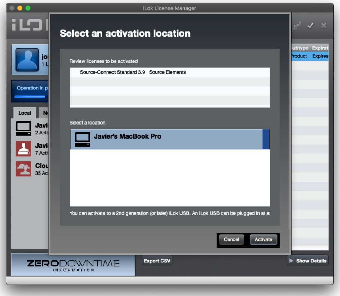 Seleccione la ubicación de activación ( Source-Connect Standard se puede activar tanto en su computadora como en una llave USB iLok ) y confirme la activación.