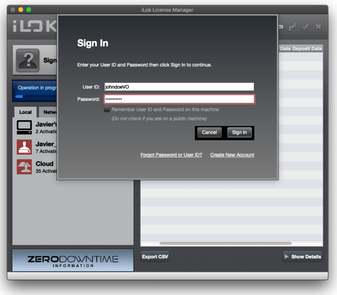 Inicie sesión en la aplicación iLok License Manager utilizando la misma cuenta iLok que utilizó para activar su licencia en el PASO 8.
