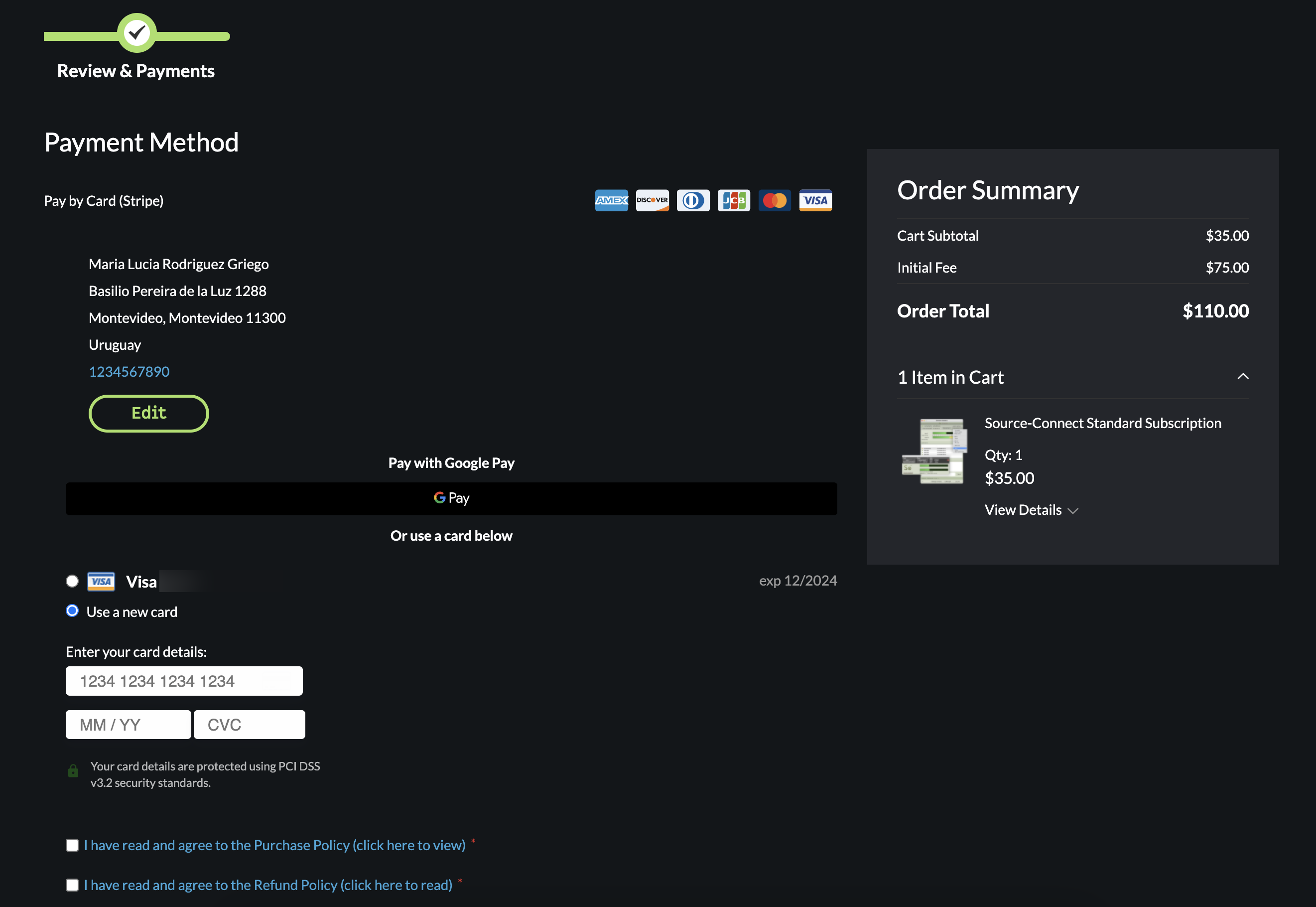 Edite su dirección para asegurarse de que tenga toda la información requerida https://store.source-elements.com/customer/address/ y haga clic en "Cambiar dirección de facturación".