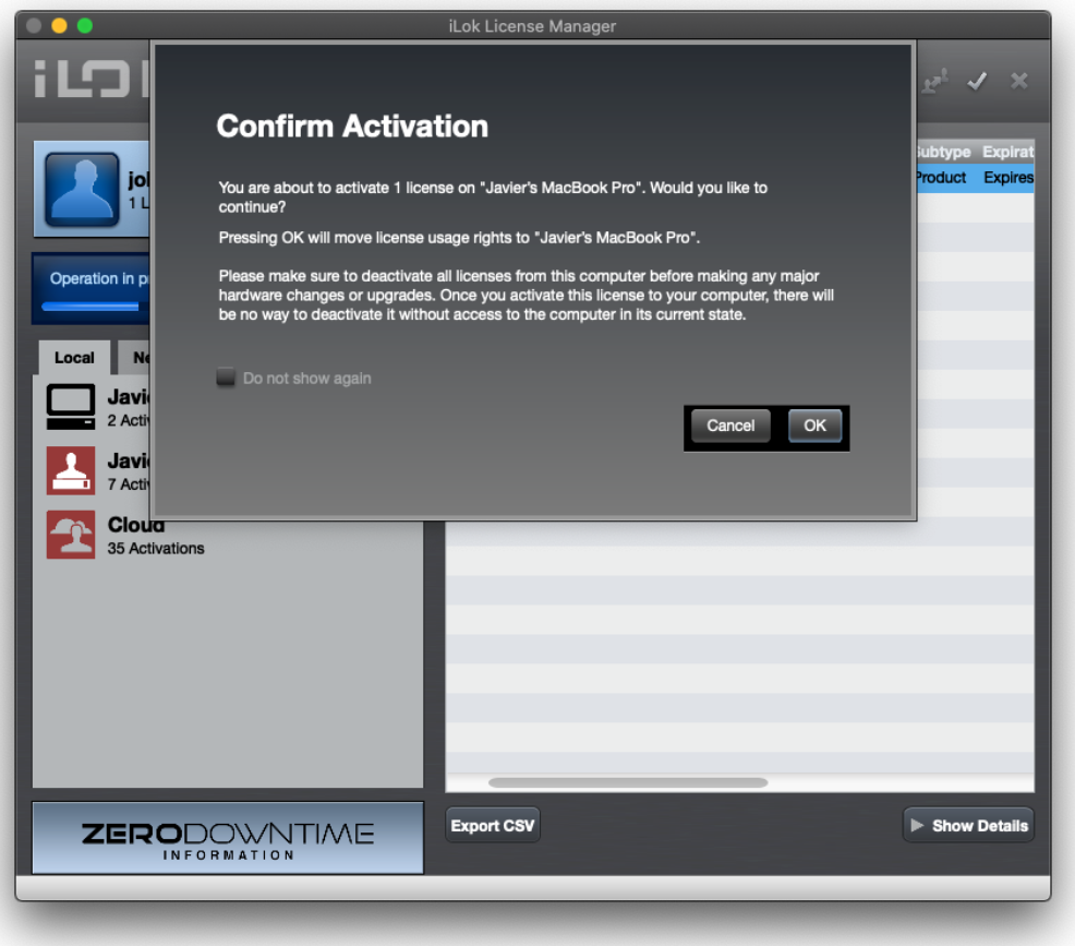Si llegó al paso 11 desde el 8 porque ya tenía una cuenta de iLok, verá el siguiente mensaje pidiéndole que active su licencia o prueba cuando abra la aplicación. Tan sólo haga clic en “Activate” e ingrese con su cuenta ya existente de iLok.
