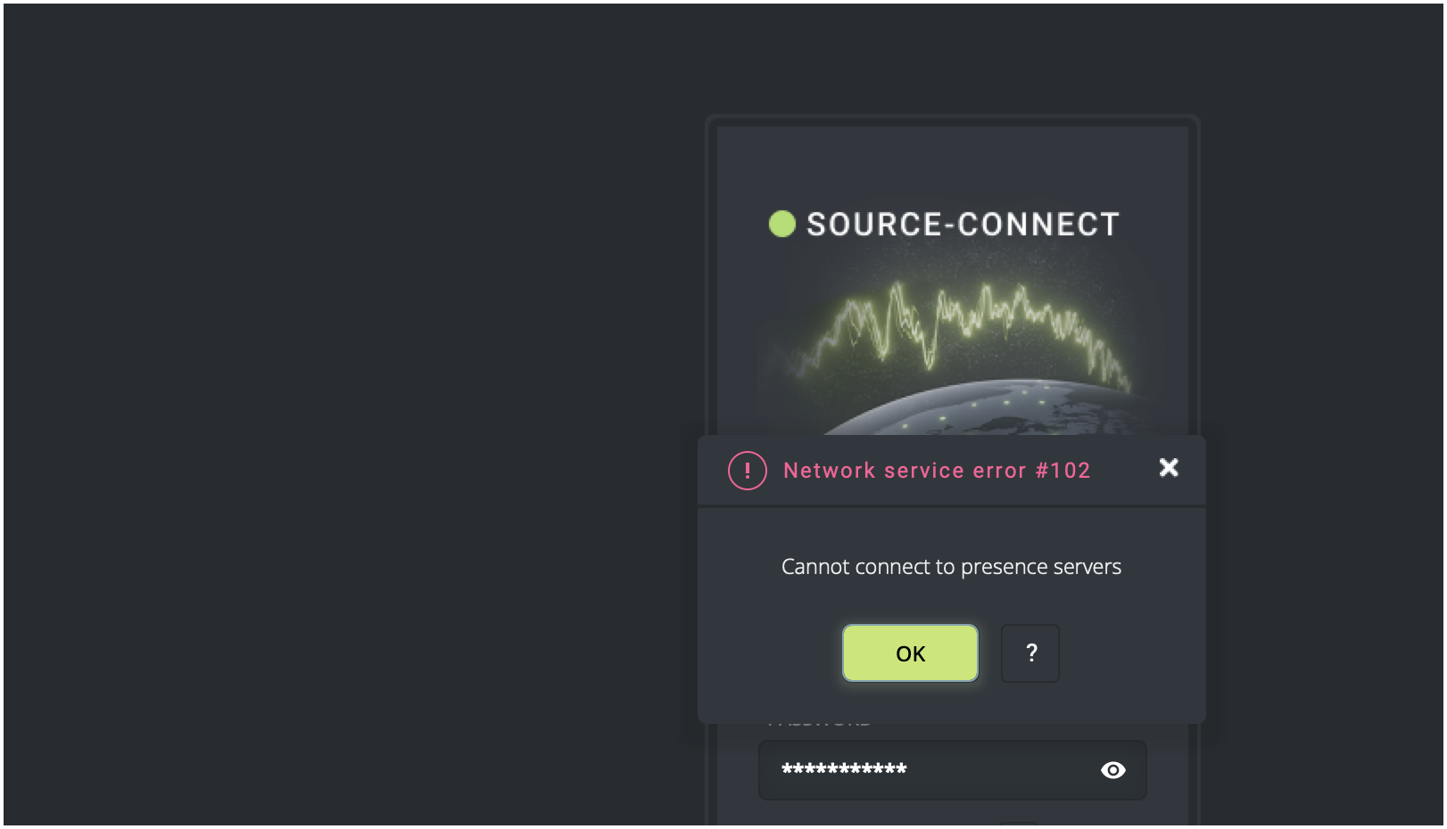 Cuando los usuarios intentan abrir Source-Connect 4 o conectarse con un usuario diferente, reciben un mensaje de error que dice "No se puede conectar a los servidores de presencia".