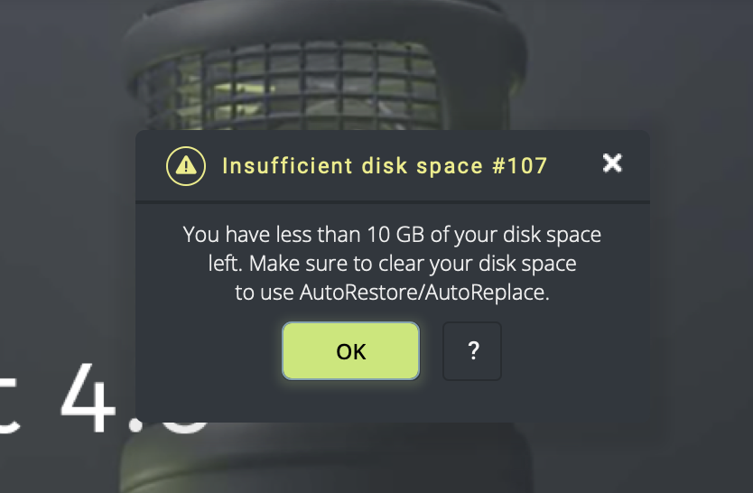 ADVERTENCIA#107: Espacio en disco insuficiente