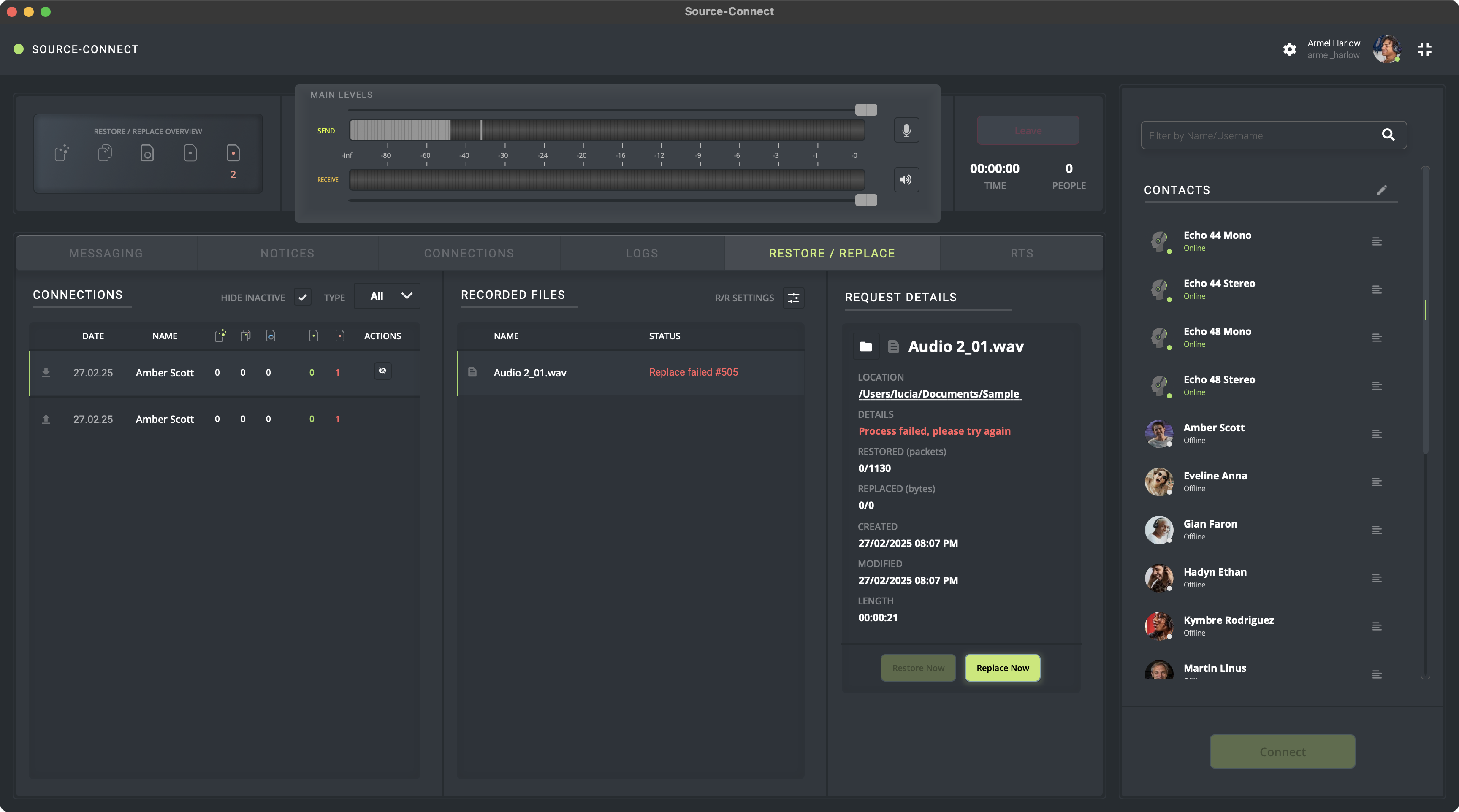 Cuando los usuarios inician una sesión de Restaurar/Reemplazar, reciben un mensaje de error que indica que el proceso falló y que deben intentarlo nuevamente.