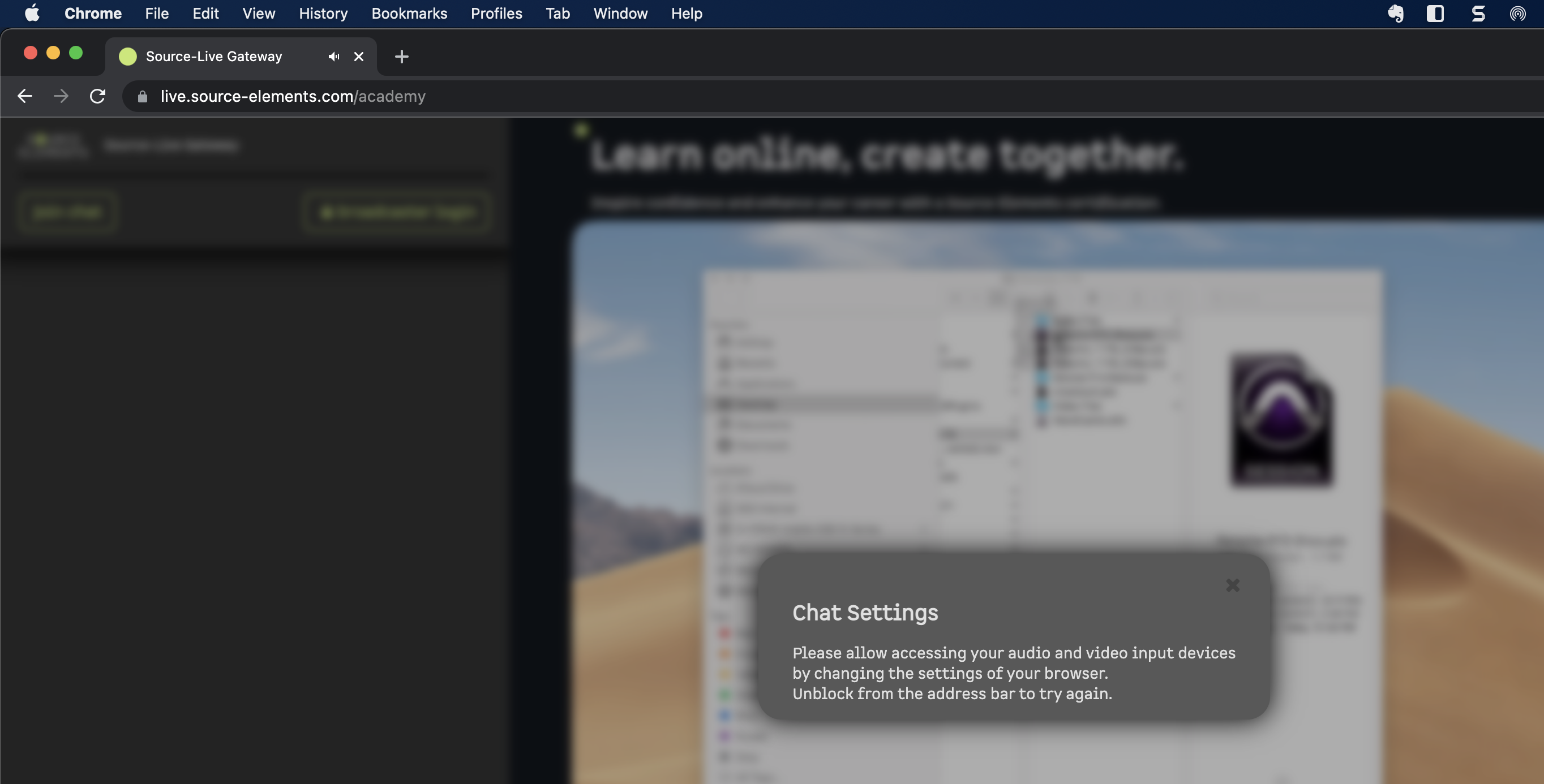 Audio access error message on Source-Live Gatewayconfiguraciones de chat