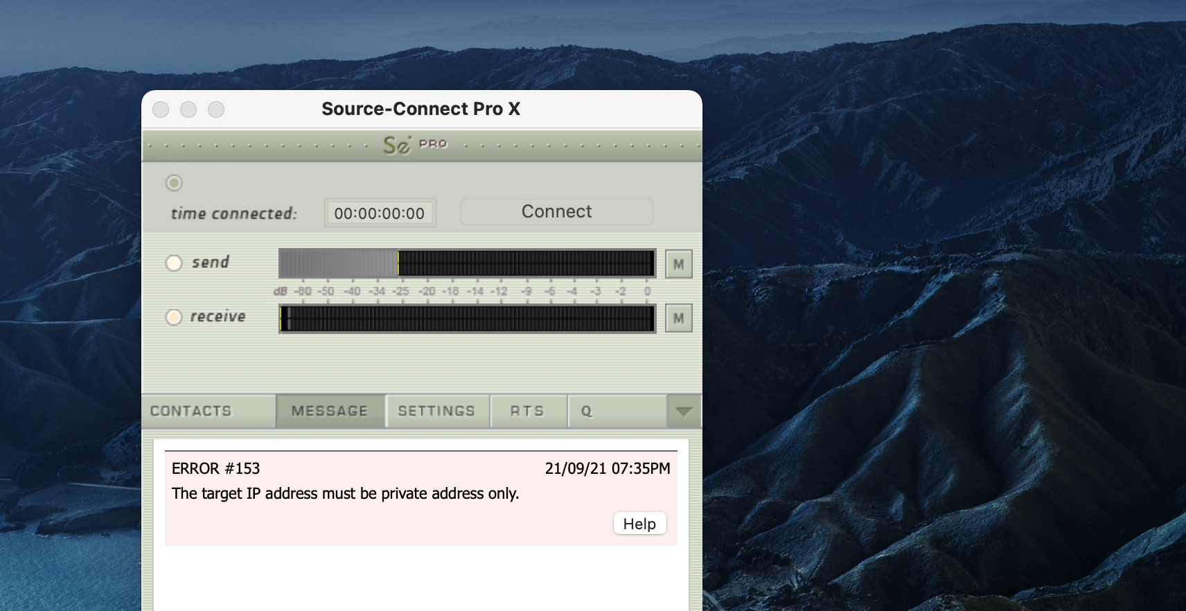 Cuando los usuarios intentan abrir una nueva sesión Source-Connect , reciben el siguiente mensaje de error: