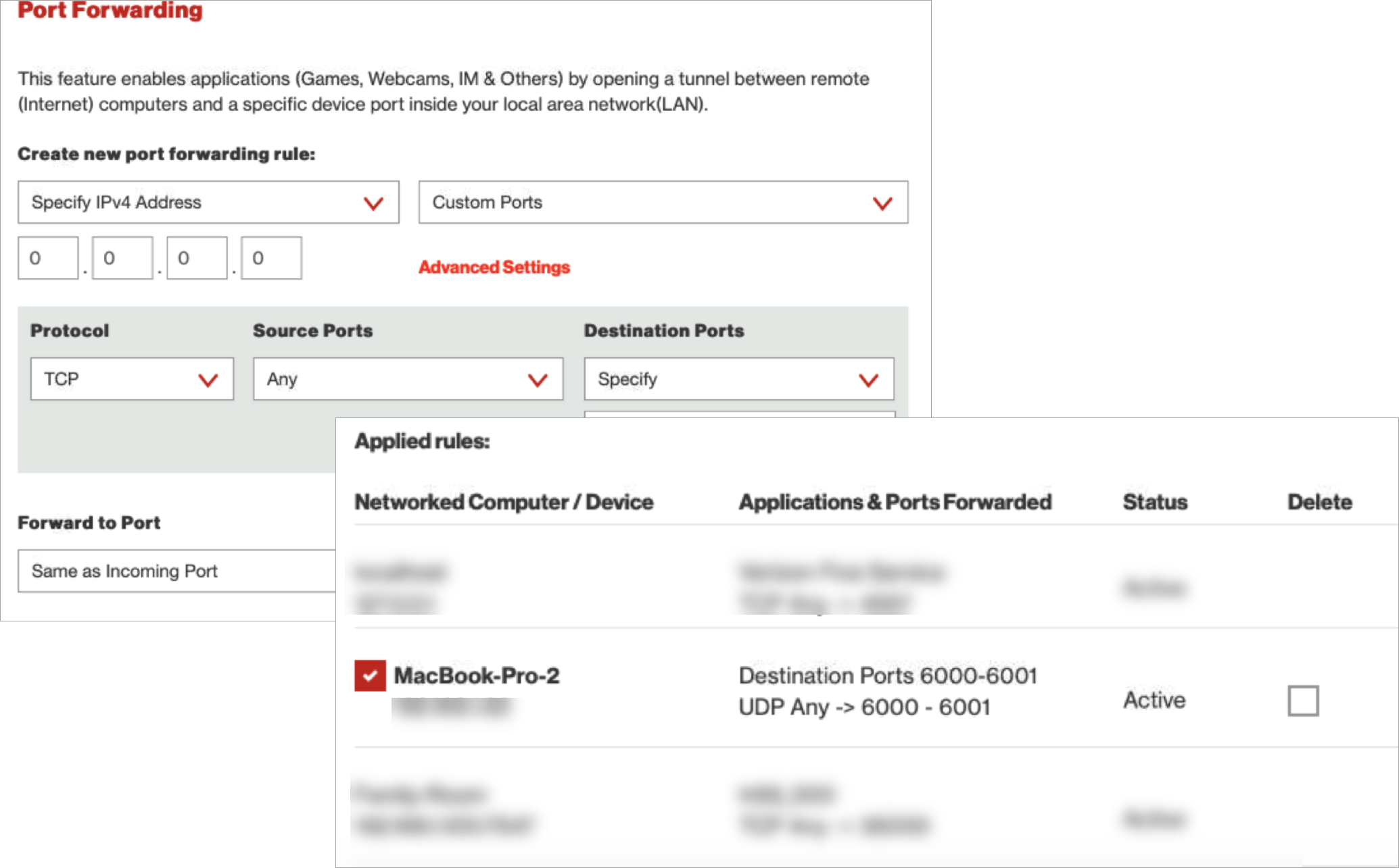 Hay una configuración en el enrutador que todavía bloquea los puertos. Por alguna razón, los enrutadores FiOS no siguen las reglas del juego y quieren que usted asigne CUALQUIER puerto al 6000~6001.