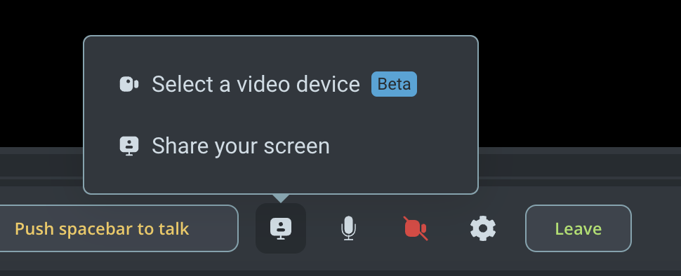 - Pase el cursor sobre el botón de presentación en la pantalla principal de Source-Nexus Gateway y seleccione “Seleccione un dispositivo de video”: