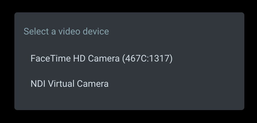 - En el menú, seleccione “NDI Virtual Camera”:
