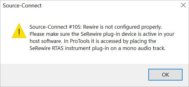 This article contains troubleshooting informationSource-Connect #105: ReWire no está configurado correctamente.
