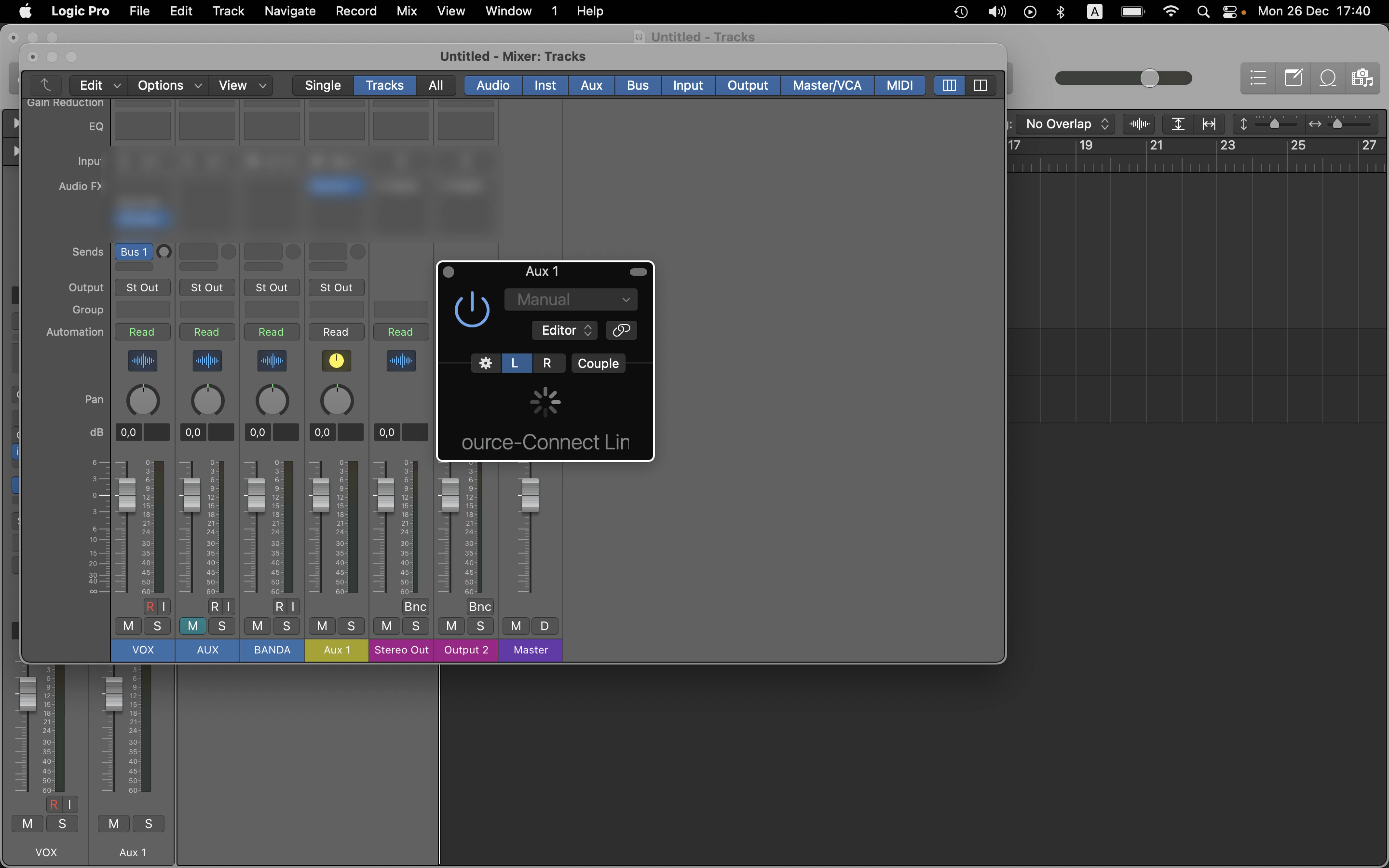 This article contains troubleshooting information.Al abrir Source-Connect Link en Logic Pro, el complemento está completamente en blanco o muestra un icono de carga en Logic Pro.