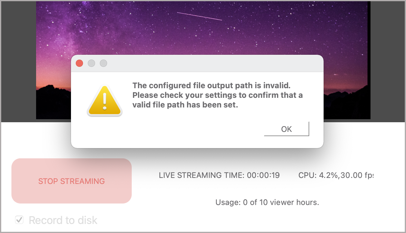 La ruta que ha configurado como su ruta de RECORD en Source-Live no existe o ha sido eliminada.