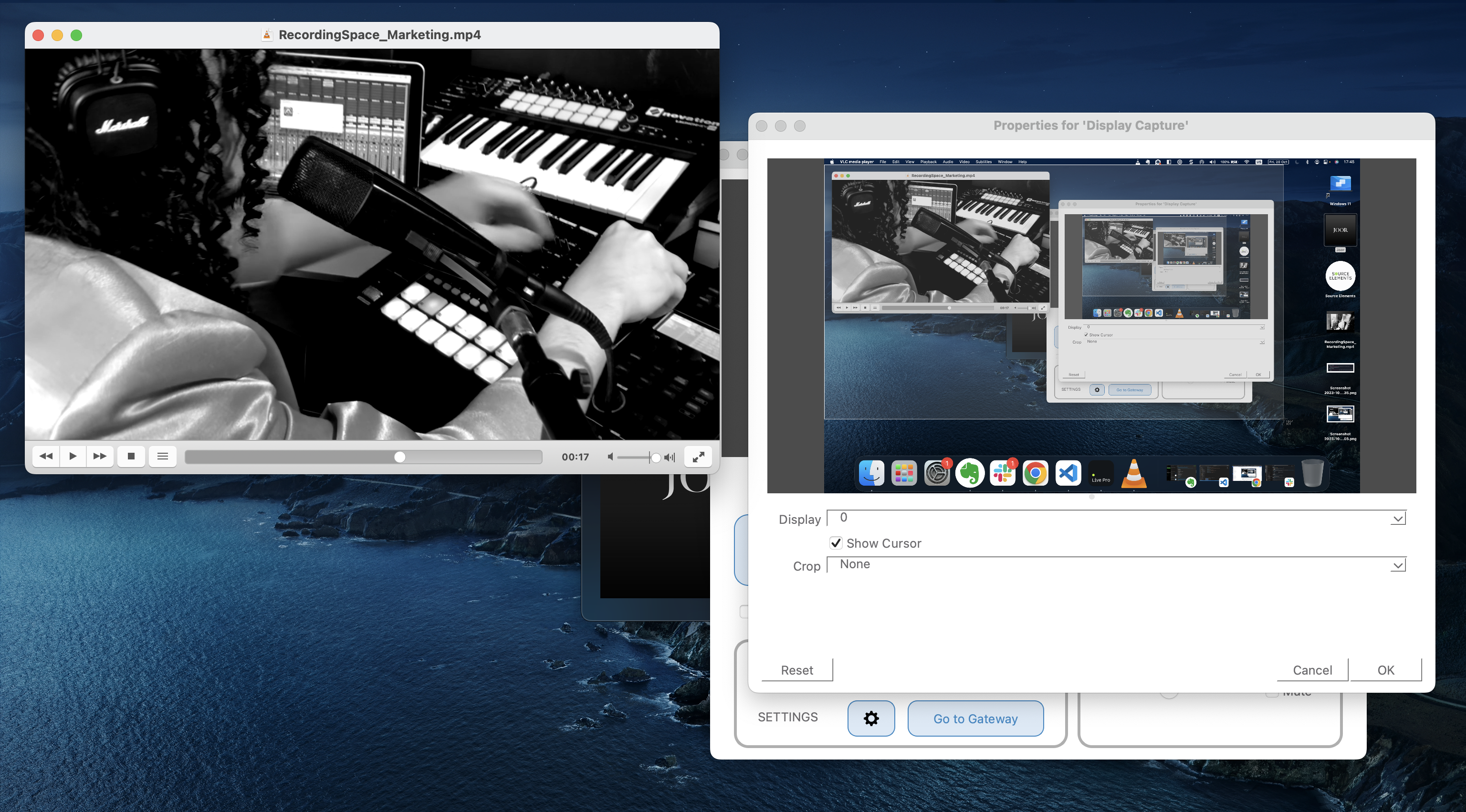Recortar : si quieres mostrar una parte de tu pantalla (en la imagen de arriba, por ejemplo, solo tu aplicación VLC.